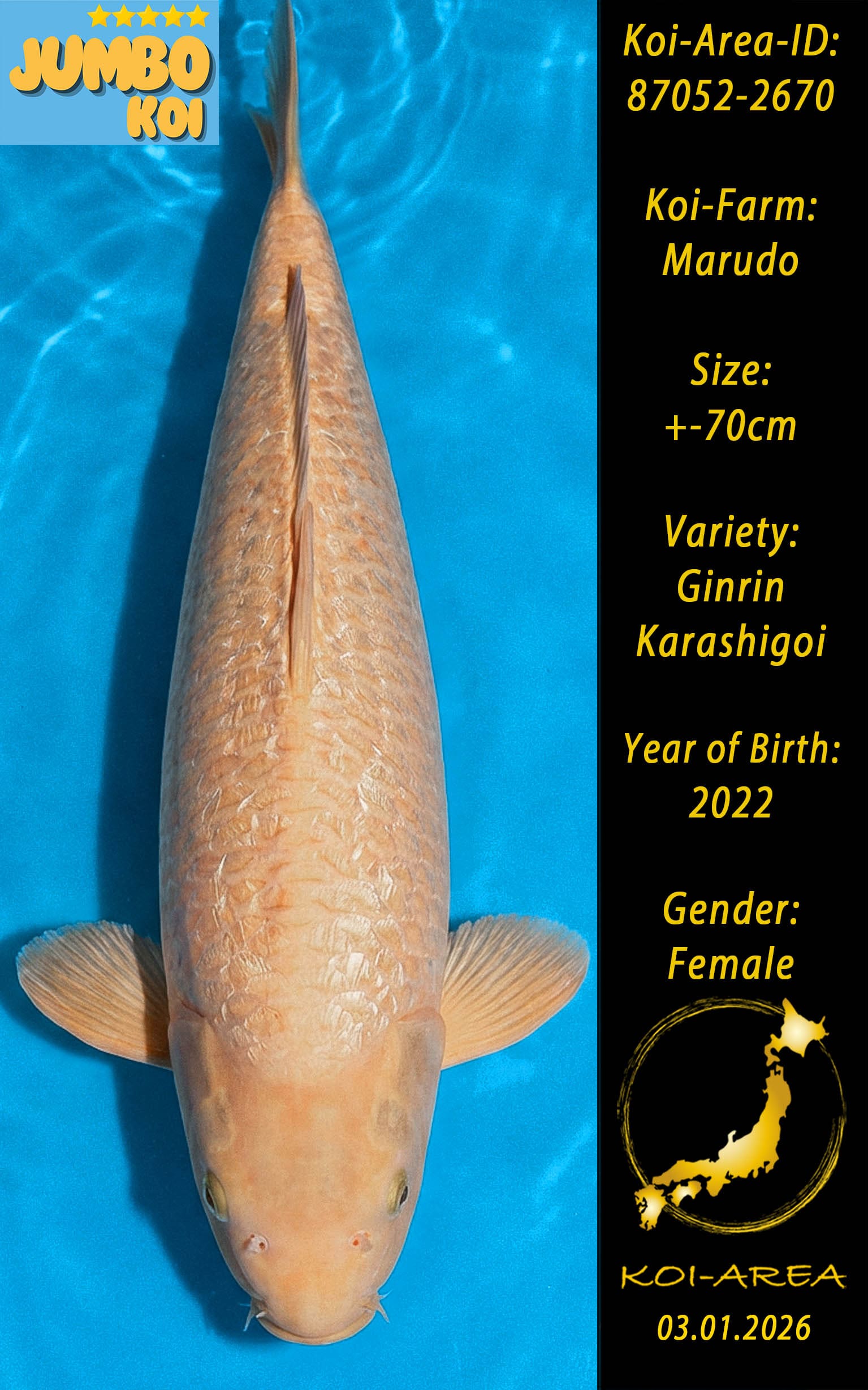 ⚠️ 🚛 🇯🇵 live aus Japan KOI – Dieser Koi schwimmt aktuell noch in Japan.  Abhol-/ und Versandtermine für diesen Koi sind ab Anfang April 2026 verfügbar