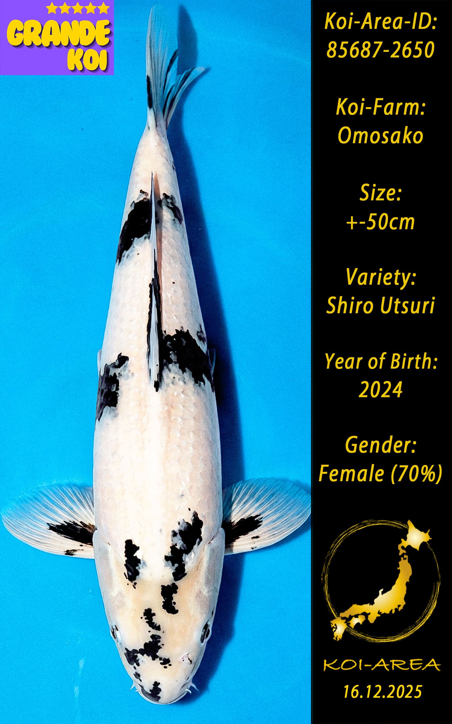 ⚠️ 🚛 🇯🇵 live aus Japan KOI – Dieser Koi schwimmt aktuell noch in Japan. Abhol-/ und Versandtermine für diesen Koi sind ab Anfang April 2026 verfügbar