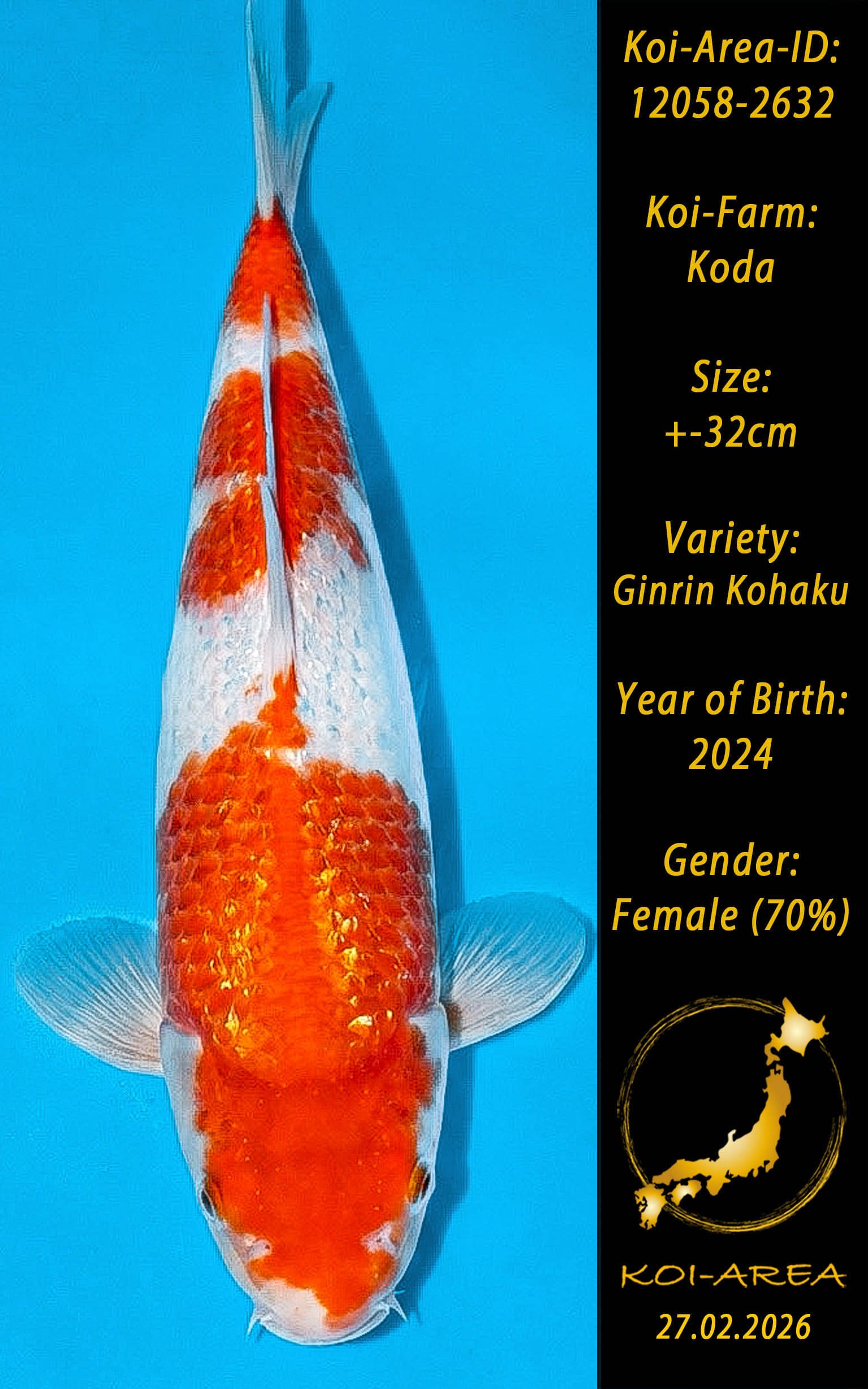 Nach erfolgreicher Auktion erscheint Ihr Koi in Ihrem Kundenkonto. Ein Zertifikat kann beim Züchter angefragt und gegen eine Gebühr dazu erworben werden.