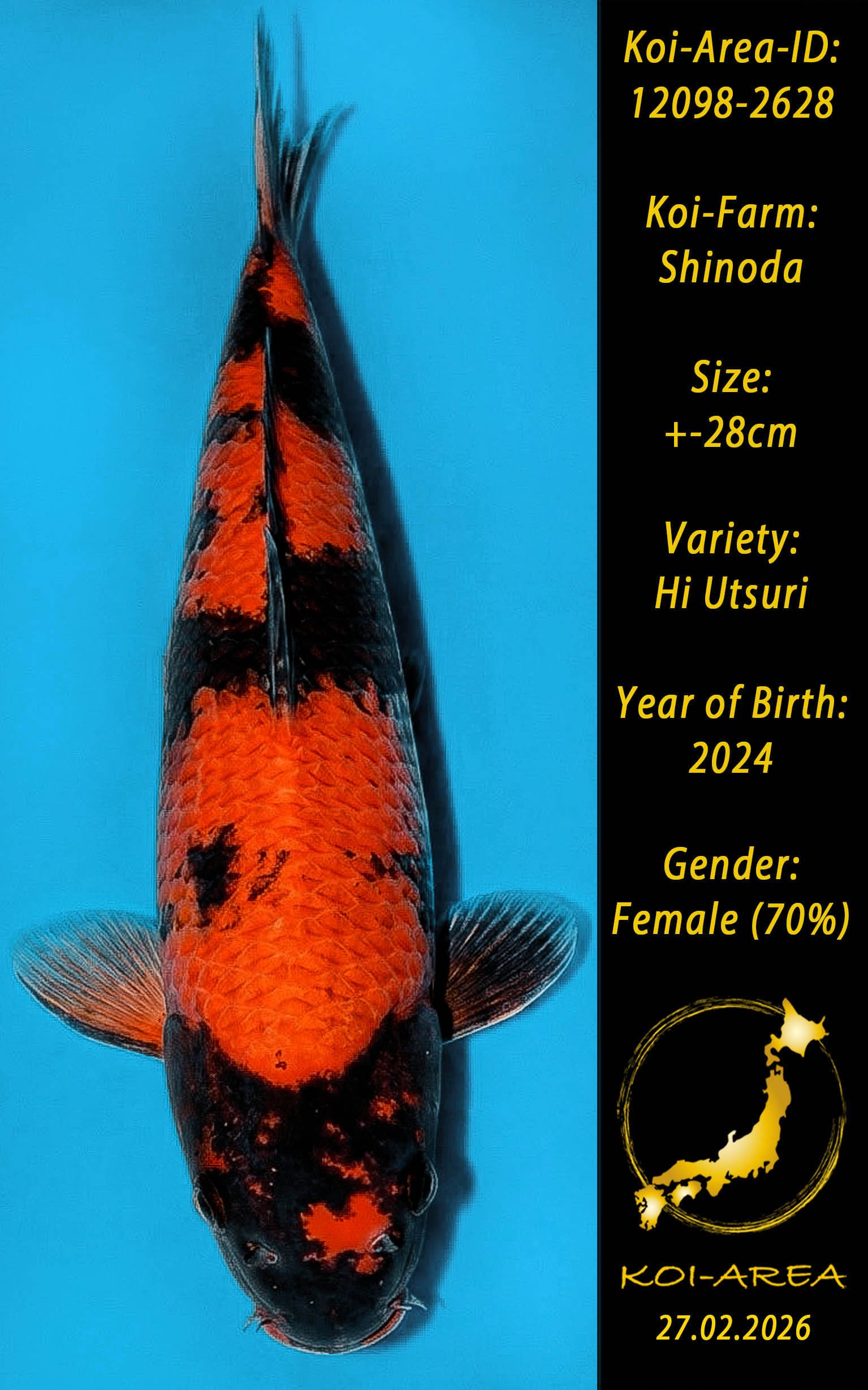 vollständiger Zahlung der Koi & der Versandrechnung werden die Koi versandt. Die