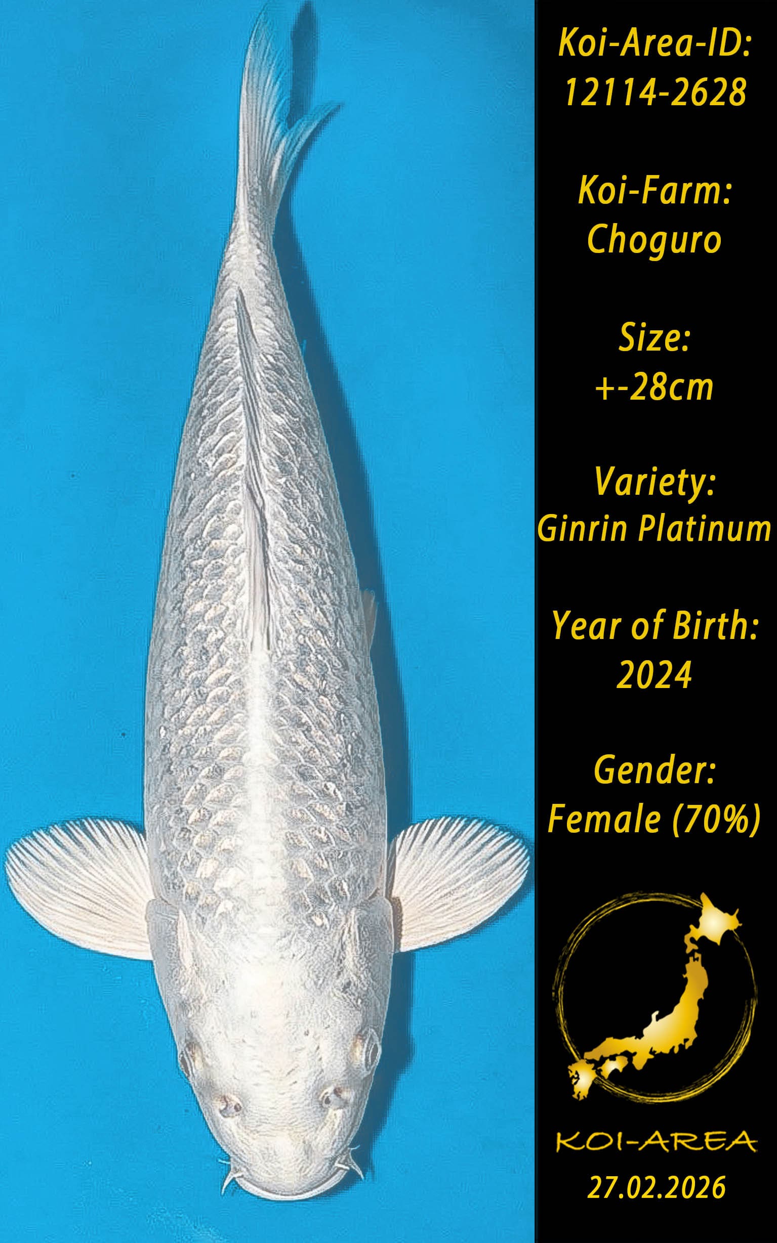 Nach erfolgreicher Auktion erscheint Ihr Koi in Ihrem Kundenkonto. Ein Zertifikat kann beim Züchter angefragt und gegen eine Gebühr dazu erworben werden.