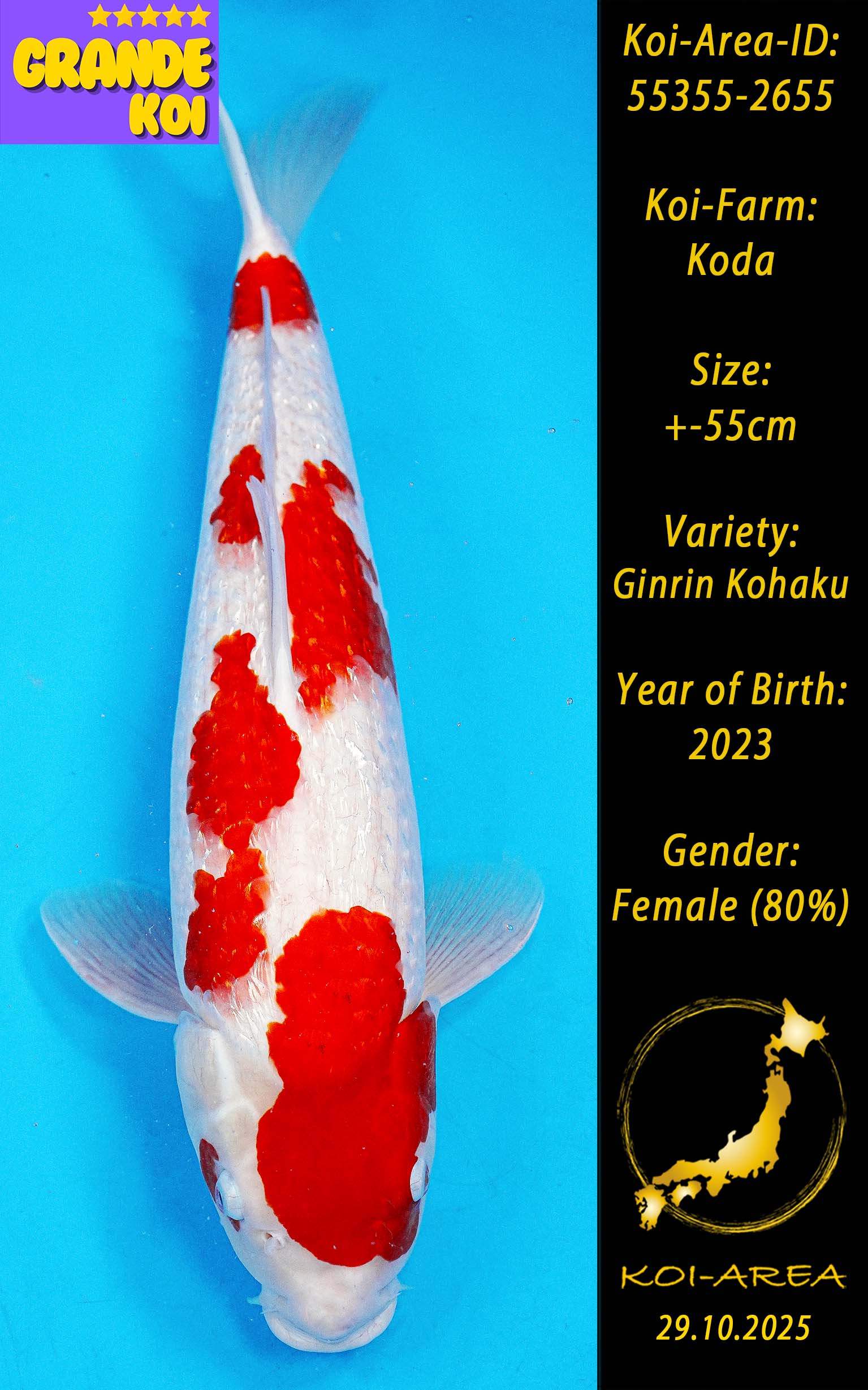 ⚠️ alle SummerSale Koi wurden Ende August bei uns im Hause fotografiert. Bitte beachten Sie, dass das Saisonende kurz bevor steht und Sie sich online einen der verfügbaren Abhol- oder Versandtermine buchen müssen. Alle Koi der Saison 24/25müssen bis zum Saisonende 30.09.2025 abgeholt worden sein. Sollten Sie online keinen passenden Termin finden müssen Sie sich innerhalb von 3 Tagen nach Rechnungsstellung mit einer Terminanfrage per E-Mail an info@koi-area.de bei uns melden. Vielen Dank