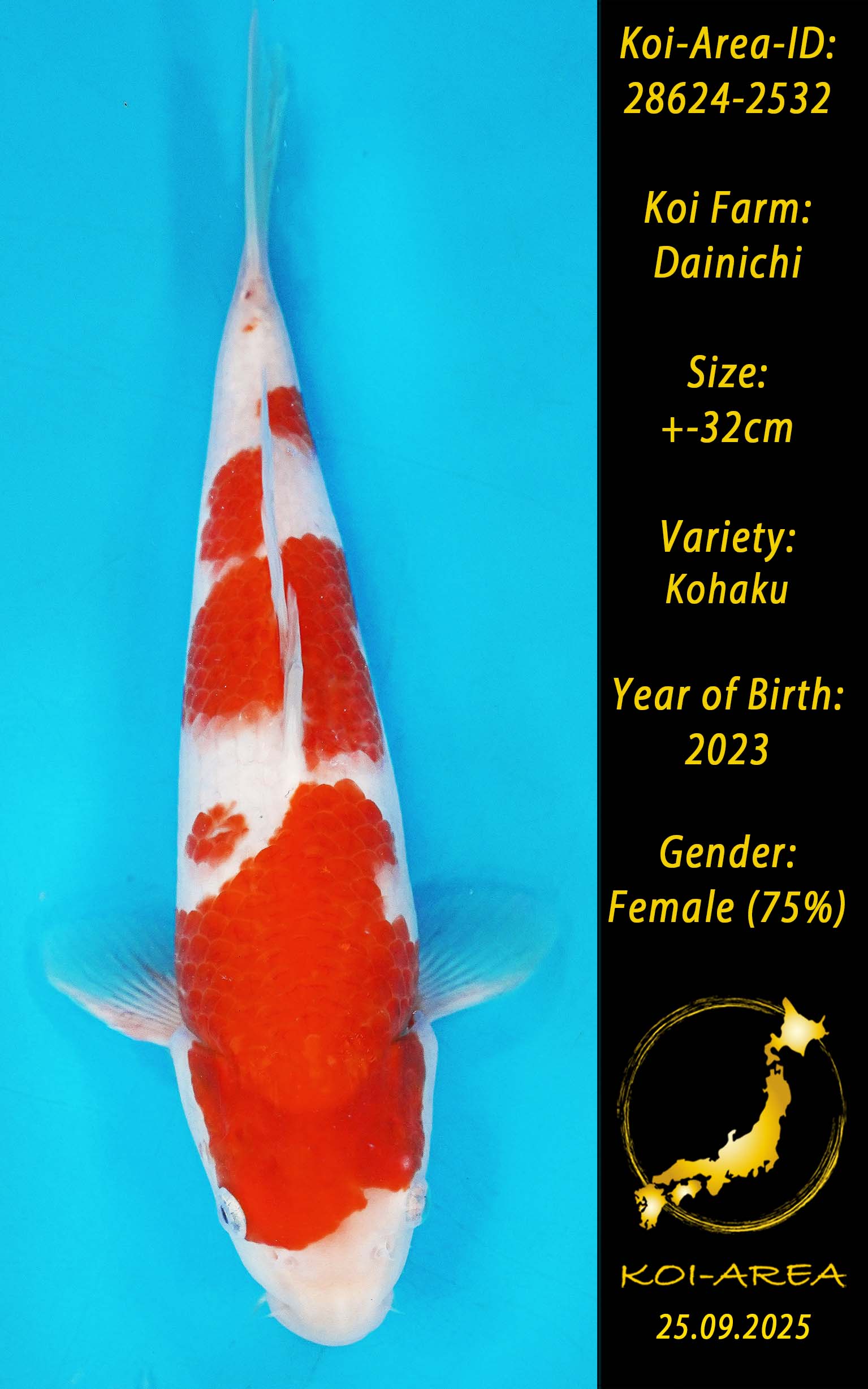 ⚠️ alle SummerSale Koi wurden Ende August bei uns im Hause fotografiert. Bitte beachten Sie, dass das Saisonende kurz bevor steht und Sie sich online einen der verfügbaren Abhol- oder Versandtermine buchen müssen. Alle Koi der Saison 24/25müssen bis zum Saisonende 30.09.2025 abgeholt worden sein. Sollten Sie online keinen passenden Termin finden müssen Sie sich innerhalb von 3 Tagen nach Rechnungsstellung mit einer Terminanfrage per E-Mail an info@koi-area.de bei uns melden. Vielen Dank