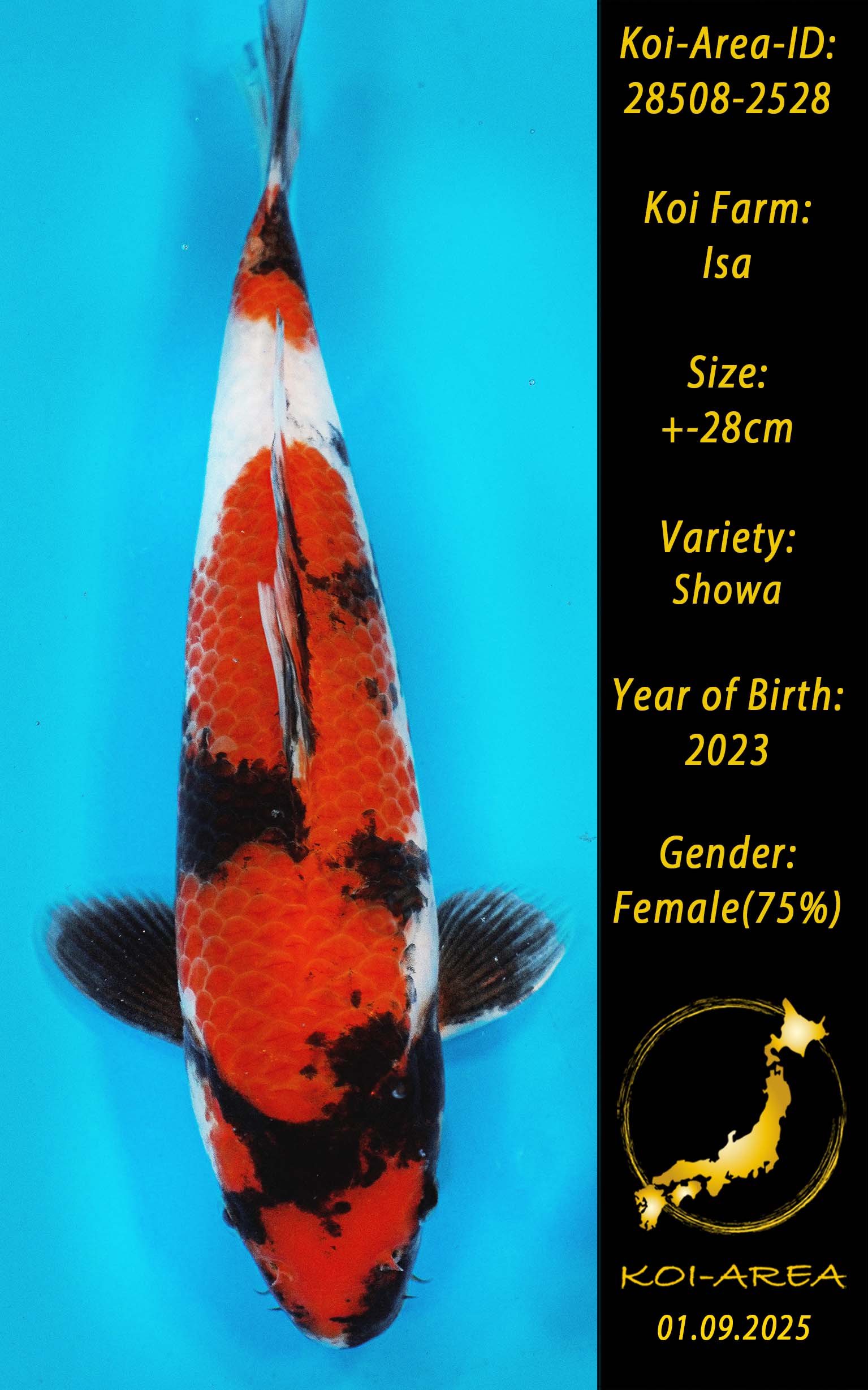 ⚠️ alle SummerSale Koi wurden Ende August bei uns im Hause fotografiert. Bitte beachten Sie, dass das Saisonende kurz bevor steht und Sie sich online einen der verfügbaren Abhol- oder Versandtermine buchen müssen. Alle Koi der Saison 24/25müssen bis zum Saisonende 30.09.2025 abgeholt worden sein. Sollten Sie online keinen passenden Termin finden müssen Sie sich innerhalb von 3 Tagen nach Rechnungsstellung mit einer Terminanfrage per E-Mail an info@koi-area.de bei uns melden. Vielen Dank