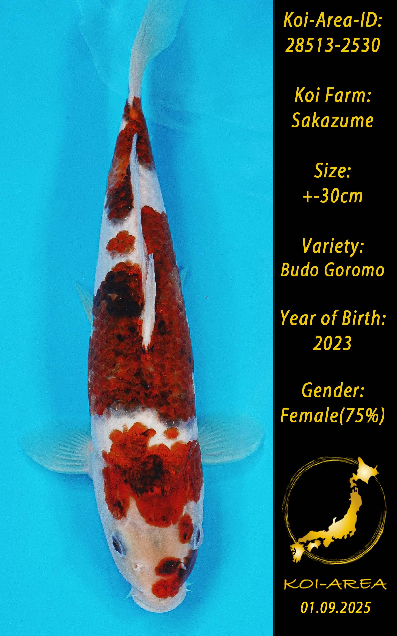 ⚠️ alle SummerSale Koi wurden Ende August bei uns im Hause fotografiert. Bitte beachten Sie, dass das Saisonende kurz bevor steht und Sie sich online einen der verfügbaren Abhol- oder Versandtermine buchen müssen. Alle Koi der Saison 24/25müssen bis zum Saisonende 30.09.2025 abgeholt worden sein. Sollten Sie online keinen passenden Termin finden müssen Sie sich innerhalb von 3 Tagen nach Rechnungsstellung mit einer Terminanfrage per E-Mail an info@koi-area.de bei uns melden. Vielen Dank