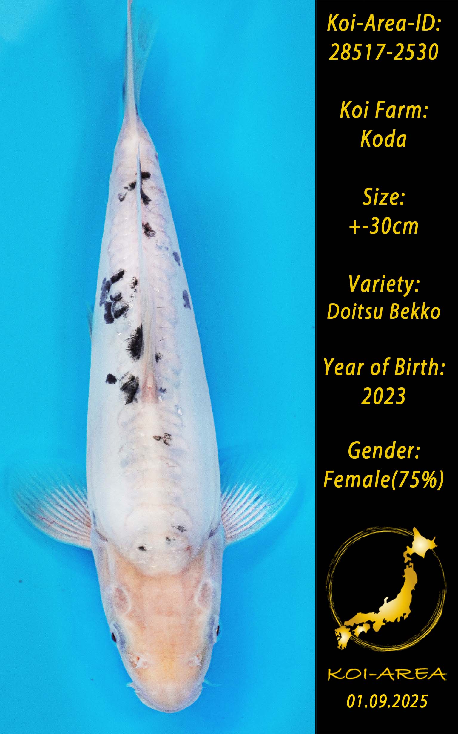 ⚠️ alle SummerSale Koi wurden Ende August bei uns im Hause fotografiert. Bitte beachten Sie, dass das Saisonende kurz bevor steht und Sie sich online einen der verfügbaren Abhol- oder Versandtermine buchen müssen. Alle Koi der Saison 24/25müssen bis zum Saisonende 30.09.2025 abgeholt worden sein. Sollten Sie online keinen passenden Termin finden müssen Sie sich innerhalb von 3 Tagen nach Rechnungsstellung mit einer Terminanfrage per E-Mail an info@koi-area.de bei uns melden. Vielen Dank