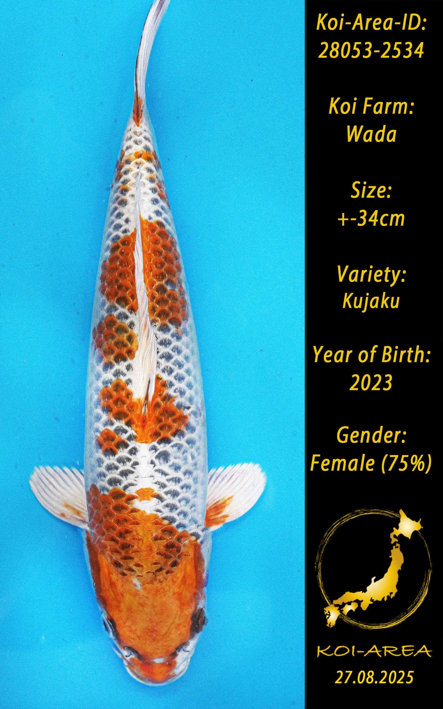 ⚠️ alle SummerSale Koi wurden Ende August bei uns im Hause fotografiert. Bitte beachten Sie, dass das Saisonende kurz bevor steht und Sie sich online einen der verfügbaren Abhol- oder Versandtermine buchen müssen. Alle Koi der Saison 24/25müssen bis zum Saisonende 30.09.2025 abgeholt worden sein. Sollten Sie online keinen passenden Termin finden müssen Sie sich innerhalb von 3 Tagen nach Rechnungsstellung mit einer Terminanfrage per E-Mail an info@koi-area.de bei uns melden. Vielen Dank
