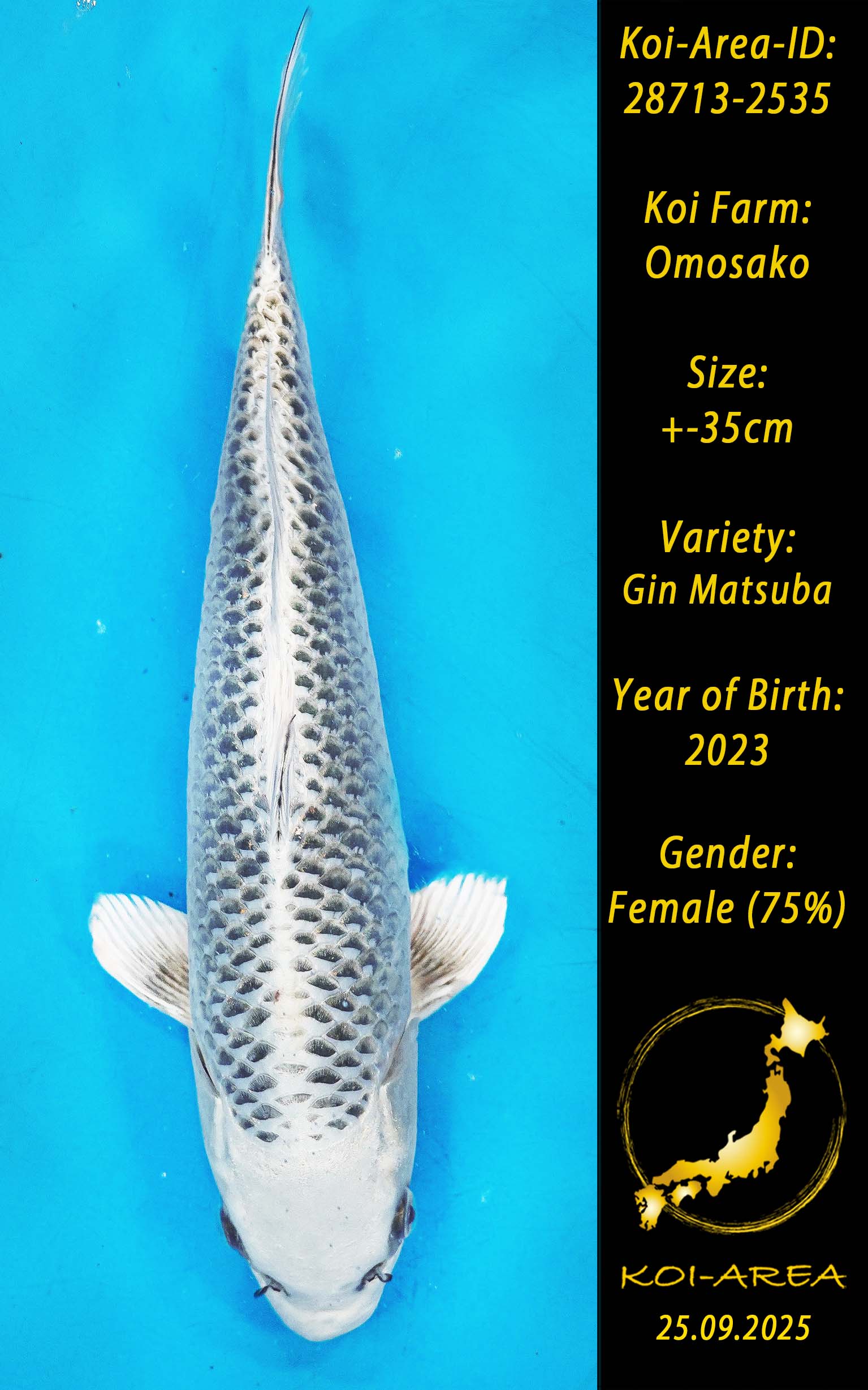 ⚠️ alle SummerSale Koi wurden Ende August bei uns im Hause fotografiert. Bitte beachten Sie, dass das Saisonende kurz bevor steht und Sie sich online einen der verfügbaren Abhol- oder Versandtermine buchen müssen. Alle Koi der Saison 24/25müssen bis zum Saisonende 30.09.2025 abgeholt worden sein. Sollten Sie online keinen passenden Termin finden müssen Sie sich innerhalb von 3 Tagen nach Rechnungsstellung mit einer Terminanfrage per E-Mail an info@koi-area.de bei uns melden. Vielen Dank
