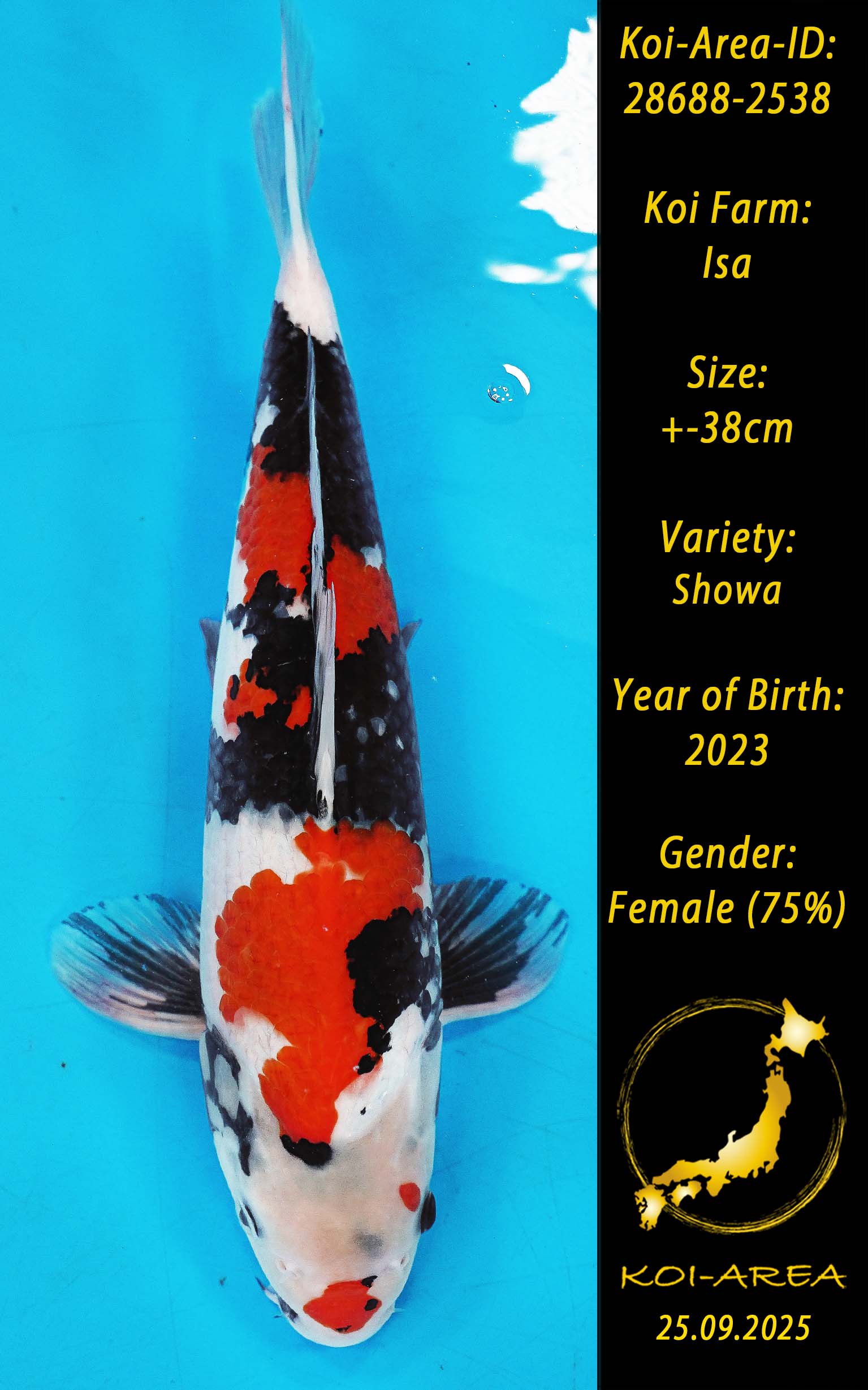 ⚠️ alle SummerSale Koi wurden Ende August bei uns im Hause fotografiert. Bitte beachten Sie, dass das Saisonende kurz bevor steht und Sie sich online einen der verfügbaren Abhol- oder Versandtermine buchen müssen. Alle Koi der Saison 24/25müssen bis zum Saisonende 30.09.2025 abgeholt worden sein. Sollten Sie online keinen passenden Termin finden müssen Sie sich innerhalb von 3 Tagen nach Rechnungsstellung mit einer Terminanfrage per E-Mail an info@koi-area.de bei uns melden. Vielen Dank