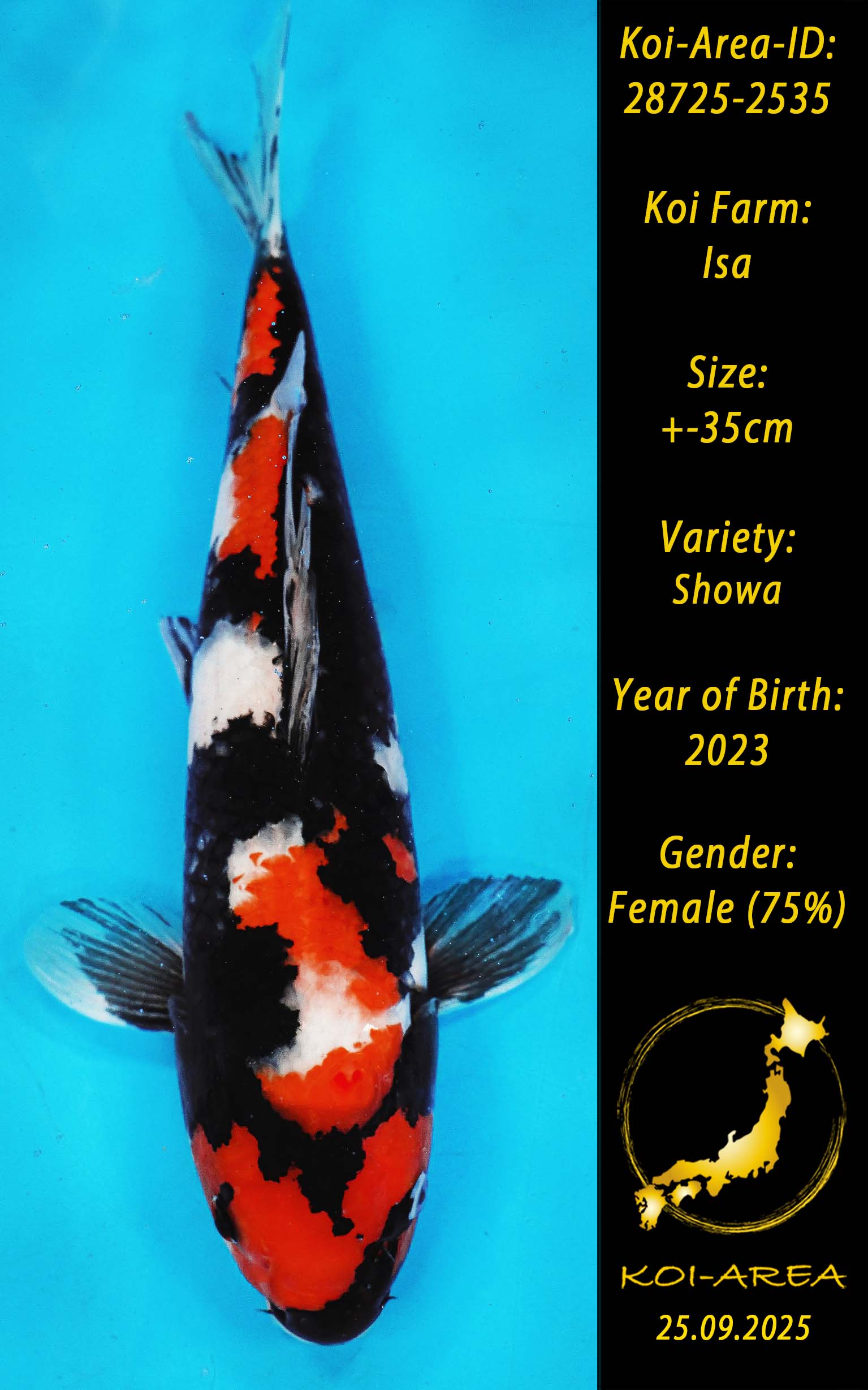 ⚠️ alle SummerSale Koi wurden Ende August bei uns im Hause fotografiert. Bitte beachten Sie, dass das Saisonende kurz bevor steht und Sie sich online einen der verfügbaren Abhol- oder Versandtermine buchen müssen. Alle Koi der Saison 24/25müssen bis zum Saisonende 30.09.2025 abgeholt worden sein. Sollten Sie online keinen passenden Termin finden müssen Sie sich innerhalb von 3 Tagen nach Rechnungsstellung mit einer Terminanfrage per E-Mail an info@koi-area.de bei uns melden. Vielen Dank