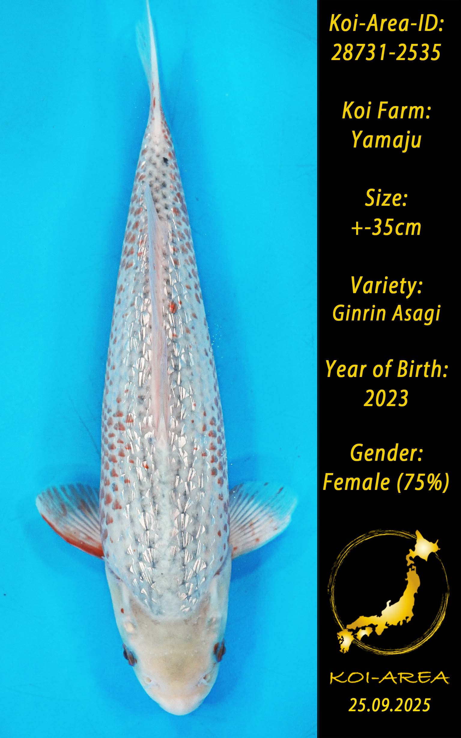 ⚠️ alle SummerSale Koi wurden Ende August bei uns im Hause fotografiert. Bitte beachten Sie, dass das Saisonende kurz bevor steht und Sie sich online einen der verfügbaren Abhol- oder Versandtermine buchen müssen. Alle Koi der Saison 24/25müssen bis zum Saisonende 30.09.2025 abgeholt worden sein. Sollten Sie online keinen passenden Termin finden müssen Sie sich innerhalb von 3 Tagen nach Rechnungsstellung mit einer Terminanfrage per E-Mail an info@koi-area.de bei uns melden. Vielen Dank