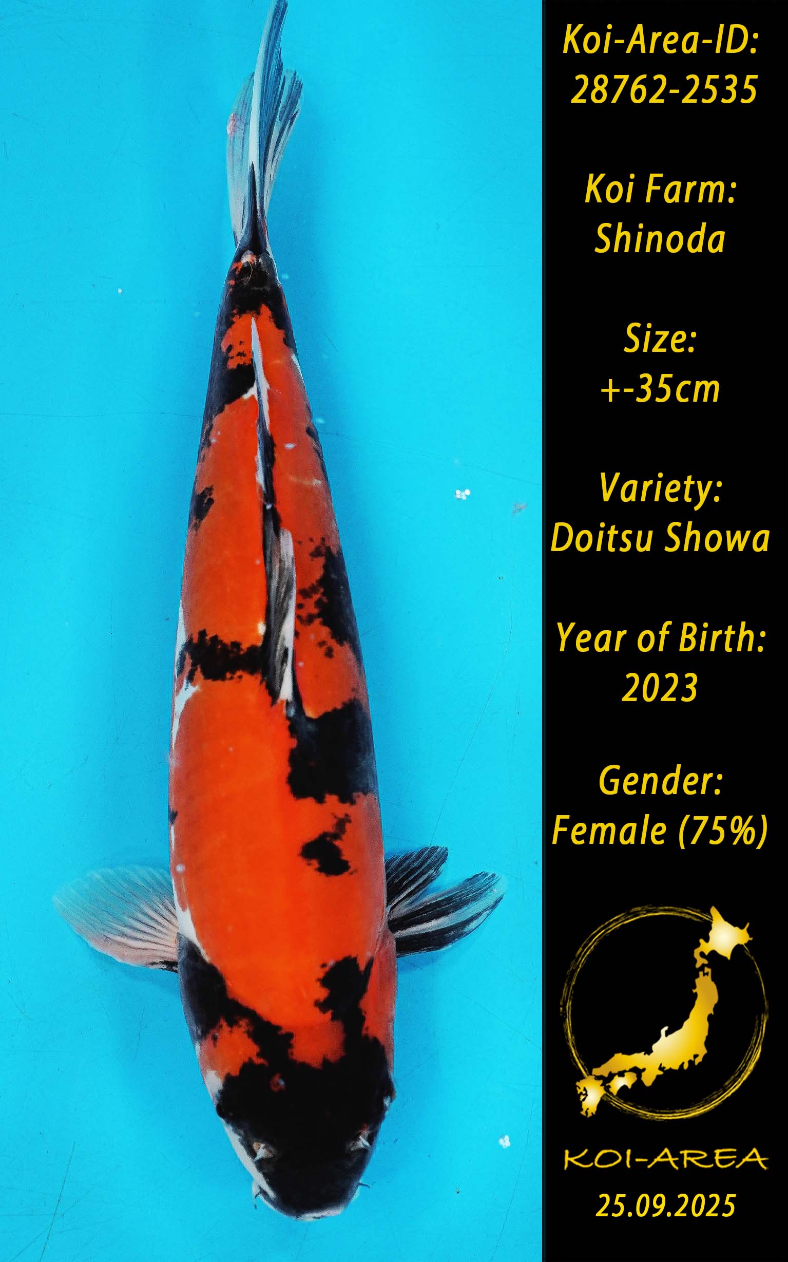 ⚠️ alle SummerSale Koi wurden Ende August bei uns im Hause fotografiert. Bitte beachten Sie, dass das Saisonende kurz bevor steht und Sie sich online einen der verfügbaren Abhol- oder Versandtermine buchen müssen. Alle Koi der Saison 24/25müssen bis zum Saisonende 30.09.2025 abgeholt worden sein. Sollten Sie online keinen passenden Termin finden müssen Sie sich innerhalb von 3 Tagen nach Rechnungsstellung mit einer Terminanfrage per E-Mail an info@koi-area.de bei uns melden. Vielen Dank
