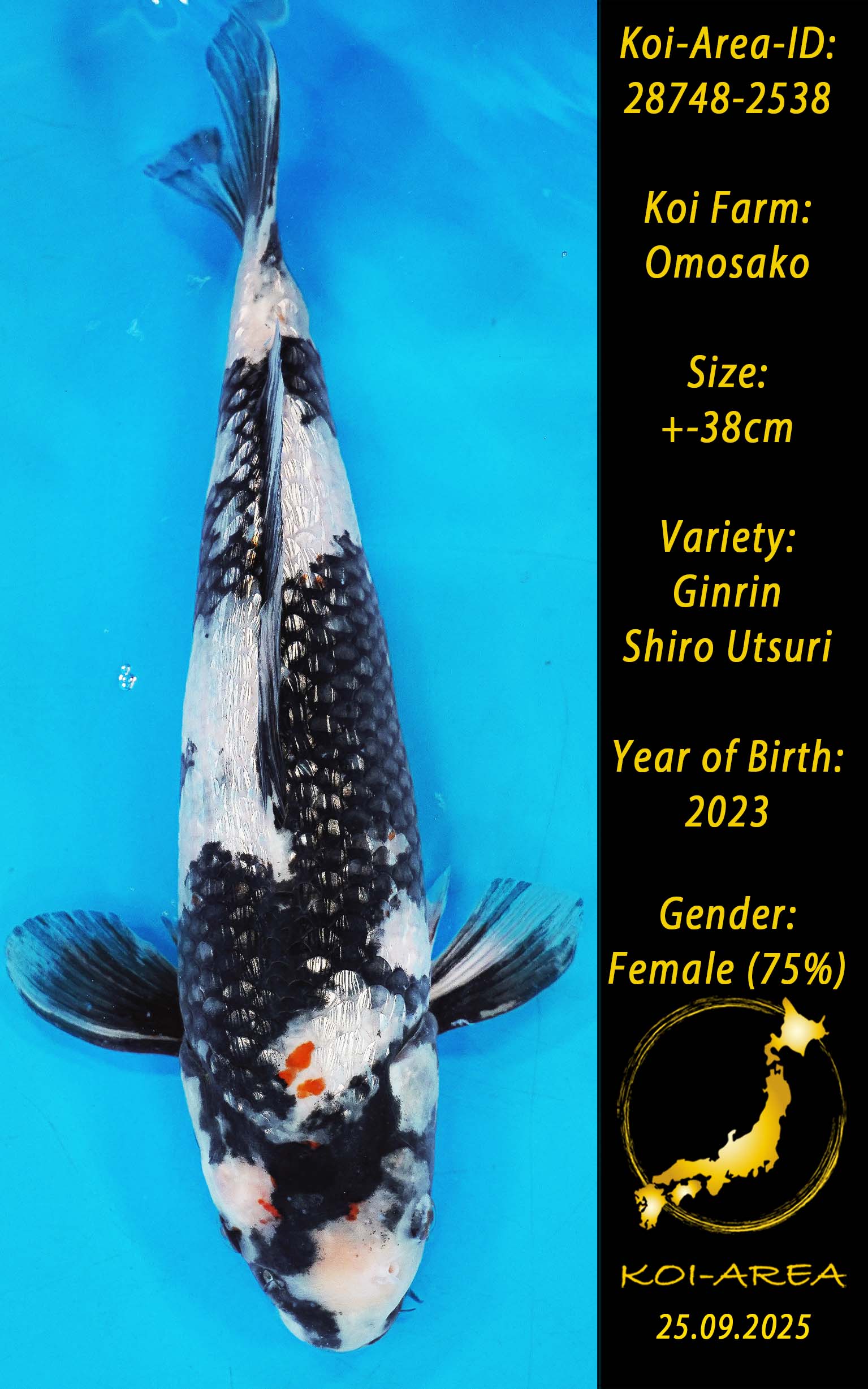 ⚠️ alle SummerSale Koi wurden Ende August bei uns im Hause fotografiert. Bitte beachten Sie, dass das Saisonende kurz bevor steht und Sie sich online einen der verfügbaren Abhol- oder Versandtermine buchen müssen. Alle Koi der Saison 24/25müssen bis zum Saisonende 30.09.2025 abgeholt worden sein. Sollten Sie online keinen passenden Termin finden müssen Sie sich innerhalb von 3 Tagen nach Rechnungsstellung mit einer Terminanfrage per E-Mail an info@koi-area.de bei uns melden. Vielen Dank