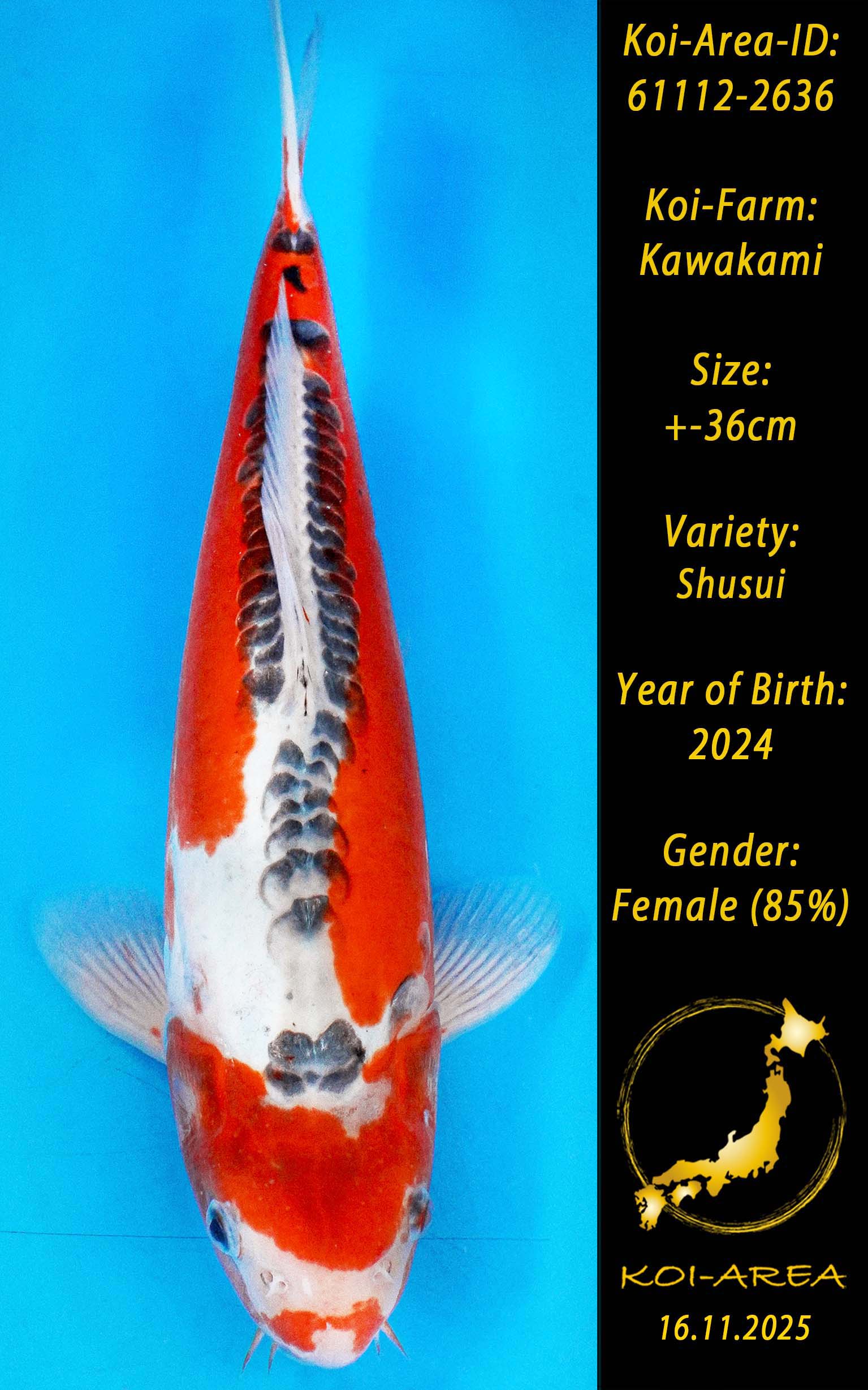 ⚠️ alle SummerSale Koi wurden Ende August bei uns im Hause fotografiert. Bitte beachten Sie, dass das Saisonende kurz bevor steht und Sie sich online einen der verfügbaren Abhol- oder Versandtermine buchen müssen. Alle Koi der Saison 24/25müssen bis zum Saisonende 30.09.2025 abgeholt worden sein. Sollten Sie online keinen passenden Termin finden müssen Sie sich innerhalb von 3 Tagen nach Rechnungsstellung mit einer Terminanfrage per E-Mail an info@koi-area.de bei uns melden. Vielen Dank