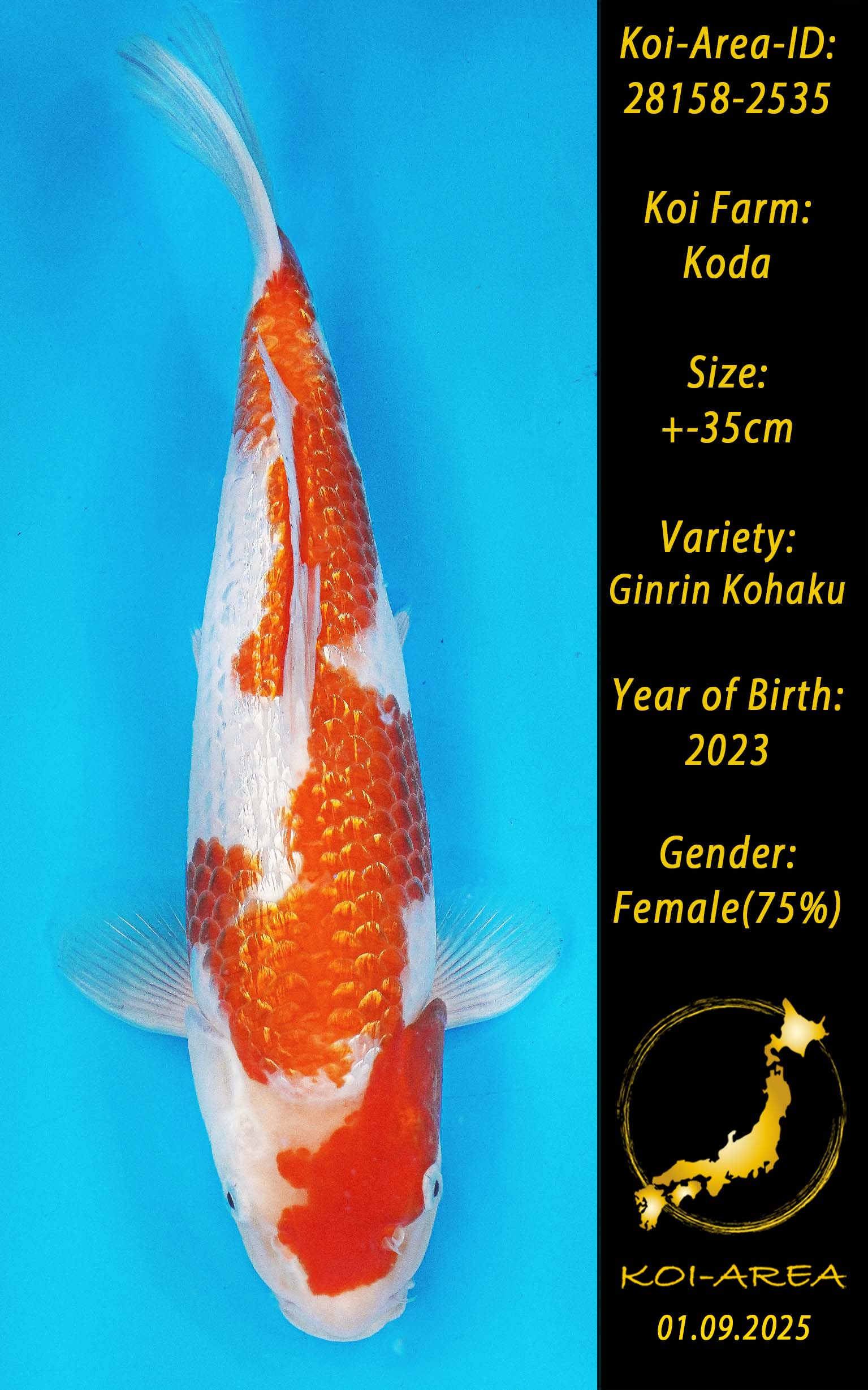 ⚠️ alle SummerSale Koi wurden Ende August bei uns im Hause fotografiert. Bitte beachten Sie, dass das Saisonende kurz bevor steht und Sie sich online einen der verfügbaren Abhol- oder Versandtermine buchen müssen. Alle Koi der Saison 24/25müssen bis zum Saisonende 30.09.2025 abgeholt worden sein. Sollten Sie online keinen passenden Termin finden müssen Sie sich innerhalb von 3 Tagen nach Rechnungsstellung mit einer Terminanfrage per E-Mail an info@koi-area.de bei uns melden. Vielen Dank