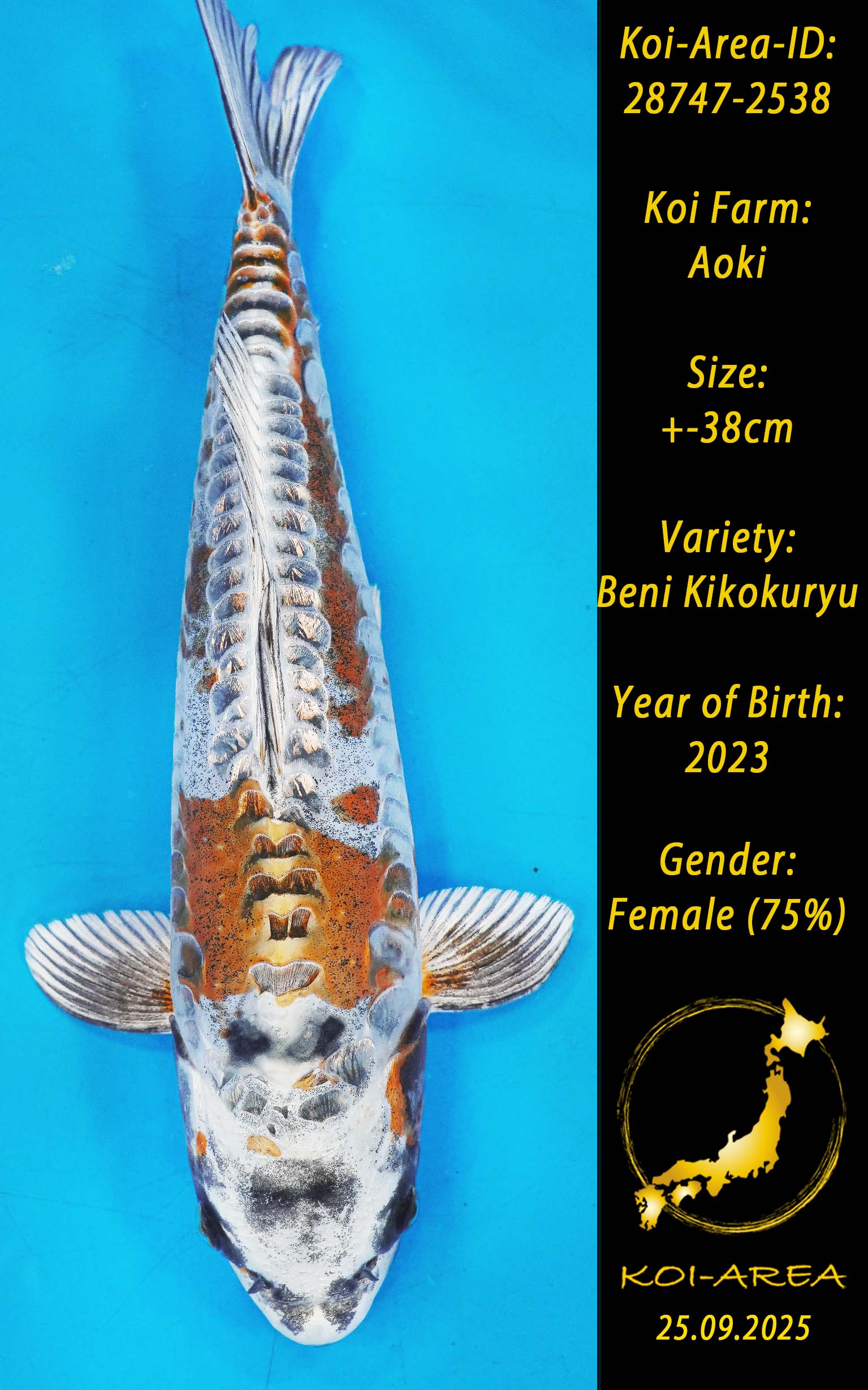 ⚠️ alle SummerSale Koi wurden Ende August bei uns im Hause fotografiert. Bitte beachten Sie, dass das Saisonende kurz bevor steht und Sie sich online einen der verfügbaren Abhol- oder Versandtermine buchen müssen. Alle Koi der Saison 24/25müssen bis zum Saisonende 30.09.2025 abgeholt worden sein. Sollten Sie online keinen passenden Termin finden müssen Sie sich innerhalb von 3 Tagen nach Rechnungsstellung mit einer Terminanfrage per E-Mail an info@koi-area.de bei uns melden. Vielen Dank
