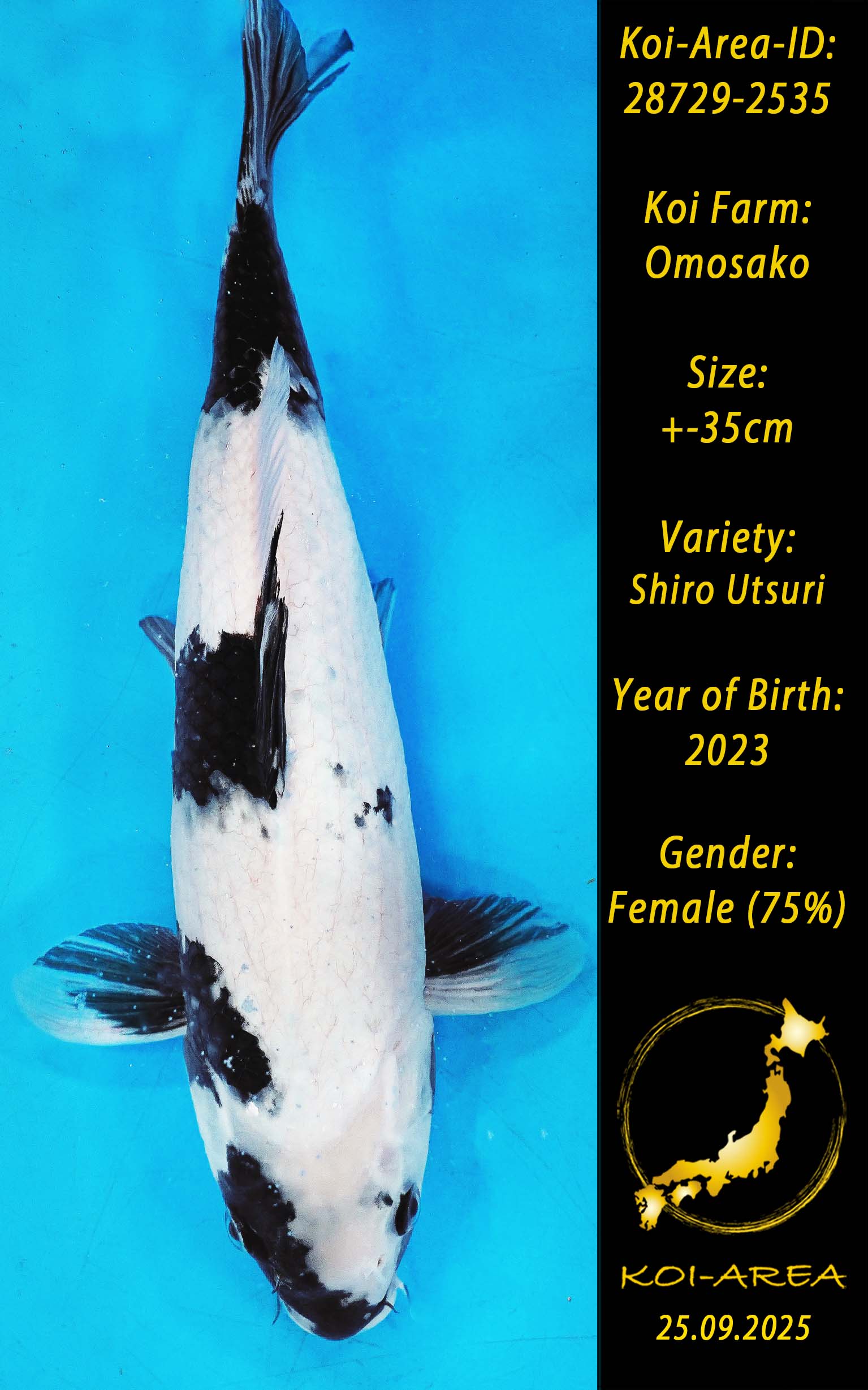 ⚠️ alle SummerSale Koi wurden Ende August bei uns im Hause fotografiert. Bitte beachten Sie, dass das Saisonende kurz bevor steht und Sie sich online einen der verfügbaren Abhol- oder Versandtermine buchen müssen. Alle Koi der Saison 24/25müssen bis zum Saisonende 30.09.2025 abgeholt worden sein. Sollten Sie online keinen passenden Termin finden müssen Sie sich innerhalb von 3 Tagen nach Rechnungsstellung mit einer Terminanfrage per E-Mail an info@koi-area.de bei uns melden. Vielen Dank