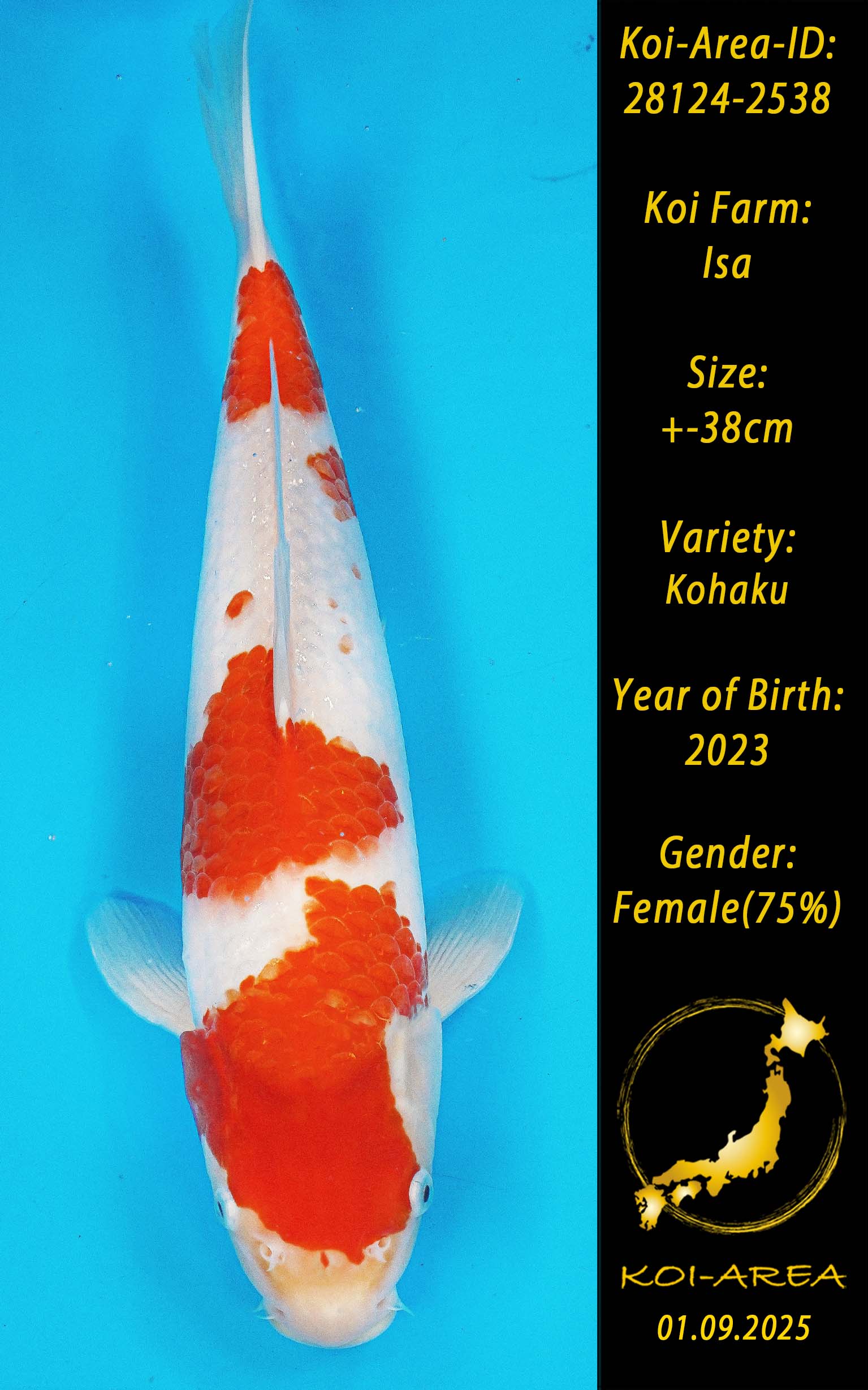 ⚠️ alle SummerSale Koi wurden Ende August bei uns im Hause fotografiert. Bitte beachten Sie, dass das Saisonende kurz bevor steht und Sie sich online einen der verfügbaren Abhol- oder Versandtermine buchen müssen. Alle Koi der Saison 24/25müssen bis zum Saisonende 30.09.2025 abgeholt worden sein. Sollten Sie online keinen passenden Termin finden müssen Sie sich innerhalb von 3 Tagen nach Rechnungsstellung mit einer Terminanfrage per E-Mail an info@koi-area.de bei uns melden. Vielen Dank