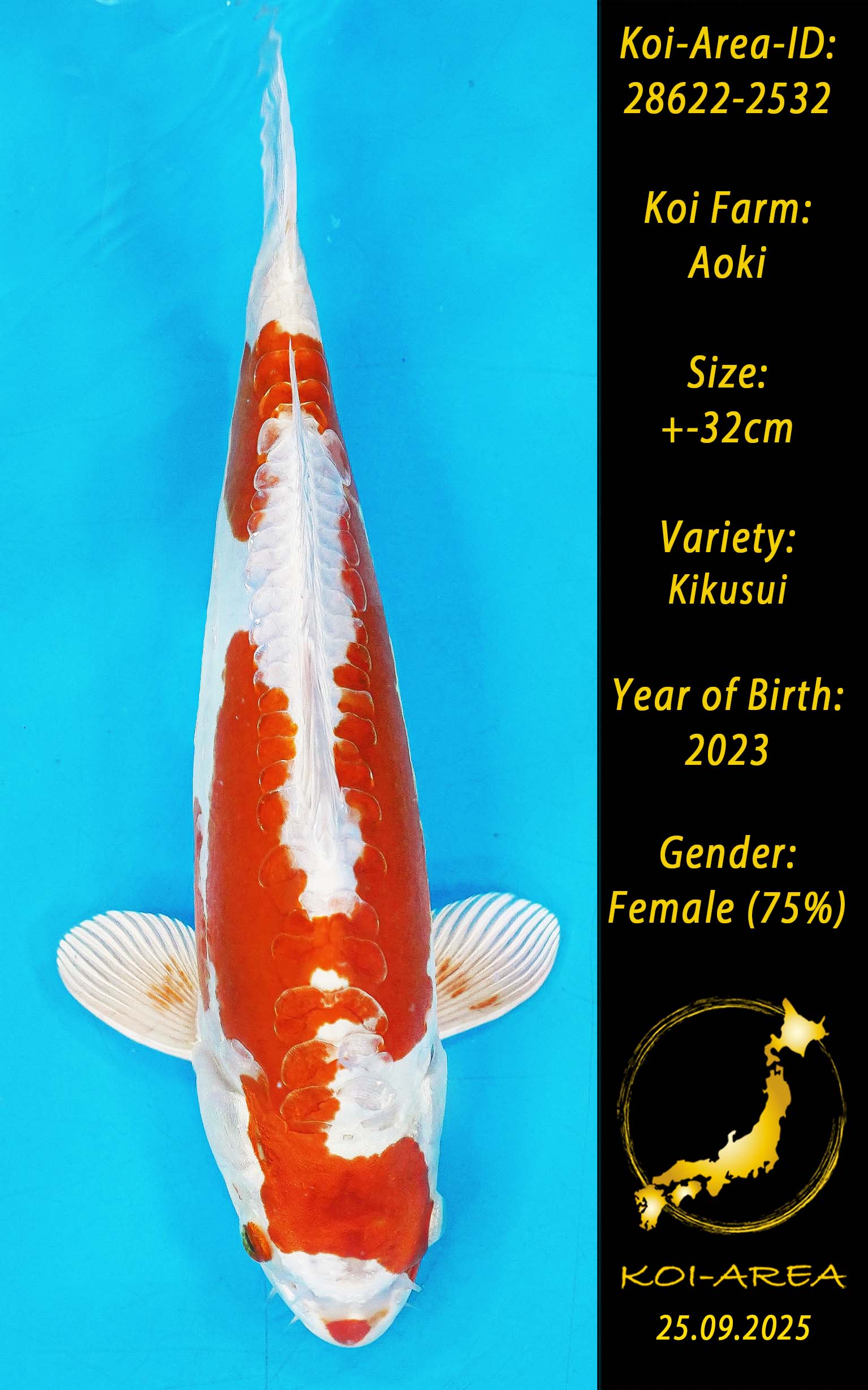 ⚠️ alle SummerSale Koi wurden Ende August bei uns im Hause fotografiert. Bitte beachten Sie, dass das Saisonende kurz bevor steht und Sie sich online einen der verfügbaren Abhol- oder Versandtermine buchen müssen. Alle Koi der Saison 24/25müssen bis zum Saisonende 30.09.2025 abgeholt worden sein. Sollten Sie online keinen passenden Termin finden müssen Sie sich innerhalb von 3 Tagen nach Rechnungsstellung mit einer Terminanfrage per E-Mail an info@koi-area.de bei uns melden. Vielen Dank