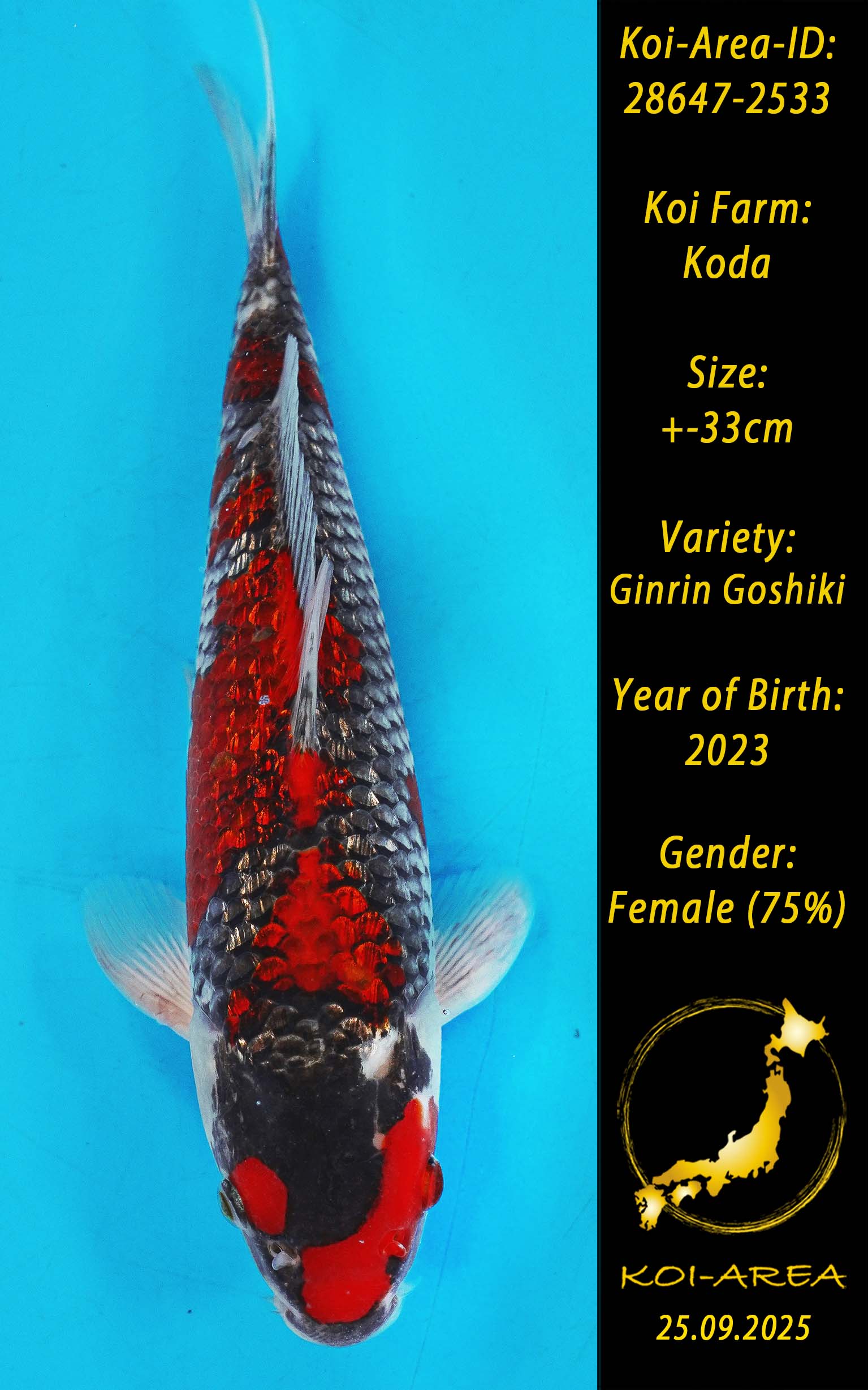 ⚠️ alle SummerSale Koi wurden Ende August bei uns im Hause fotografiert. Bitte beachten Sie, dass das Saisonende kurz bevor steht und Sie sich online einen der verfügbaren Abhol- oder Versandtermine buchen müssen. Alle Koi der Saison 24/25müssen bis zum Saisonende 30.09.2025 abgeholt worden sein. Sollten Sie online keinen passenden Termin finden müssen Sie sich innerhalb von 3 Tagen nach Rechnungsstellung mit einer Terminanfrage per E-Mail an info@koi-area.de bei uns melden. Vielen Dank