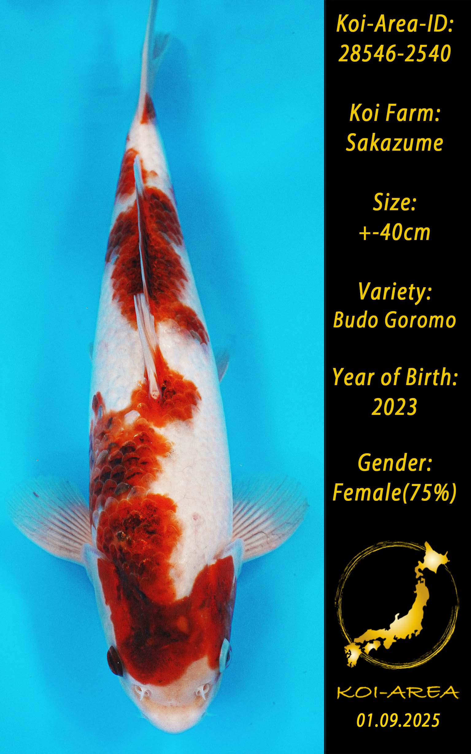 ⚠️ alle SummerSale Koi wurden Ende August bei uns im Hause fotografiert. Bitte beachten Sie, dass das Saisonende kurz bevor steht und Sie sich online einen der verfügbaren Abhol- oder Versandtermine buchen müssen. Alle Koi der Saison 24/25müssen bis zum Saisonende 30.09.2025 abgeholt worden sein. Sollten Sie online keinen passenden Termin finden müssen Sie sich innerhalb von 3 Tagen nach Rechnungsstellung mit einer Terminanfrage per E-Mail an info@koi-area.de bei uns melden. Vielen Dank