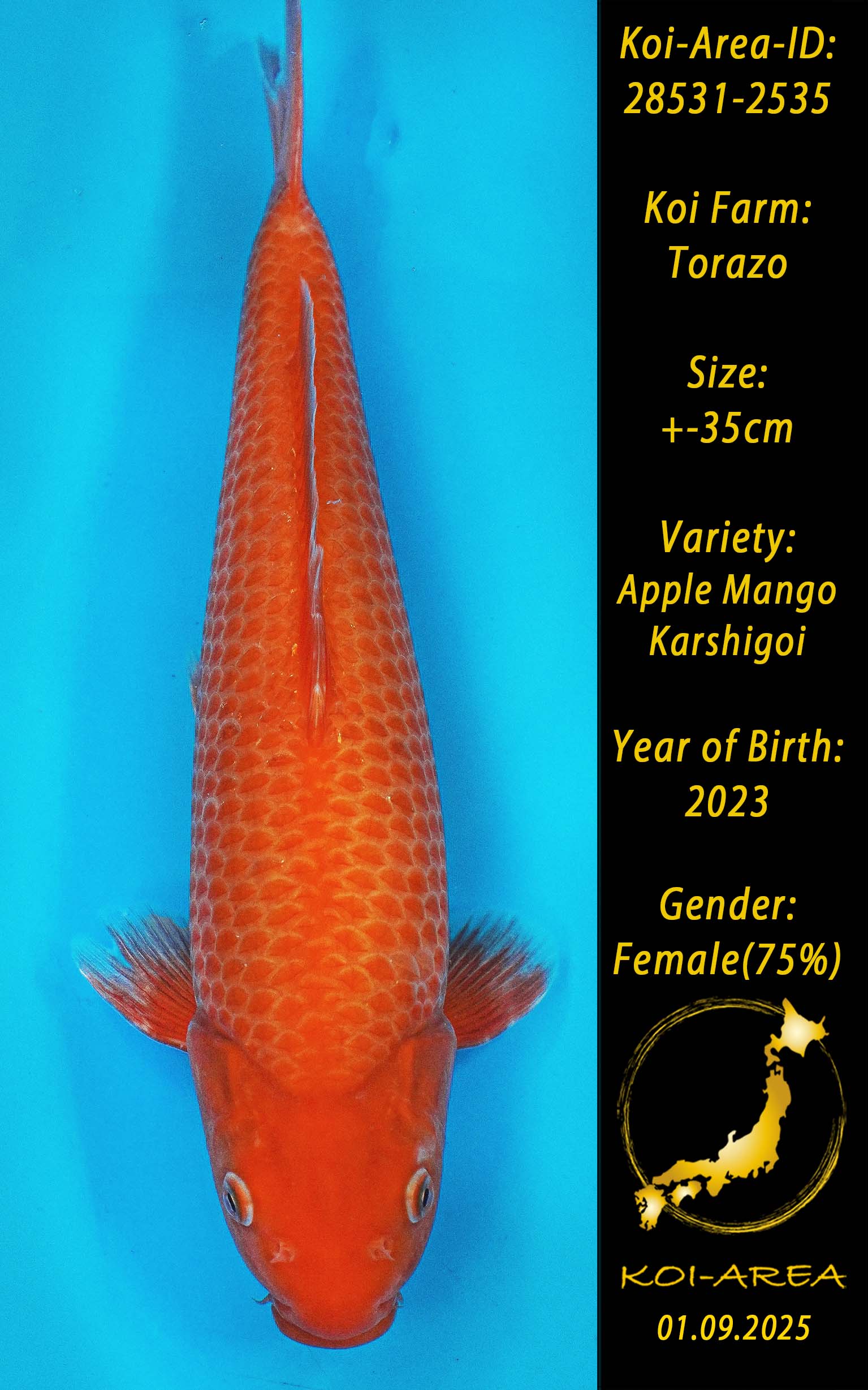 ⚠️ alle SummerSale Koi wurden Ende August bei uns im Hause fotografiert. Bitte beachten Sie, dass das Saisonende kurz bevor steht und Sie sich online einen der verfügbaren Abhol- oder Versandtermine buchen müssen. Alle Koi der Saison 24/25müssen bis zum Saisonende 30.09.2025 abgeholt worden sein. Sollten Sie online keinen passenden Termin finden müssen Sie sich innerhalb von 3 Tagen nach Rechnungsstellung mit einer Terminanfrage per E-Mail an info@koi-area.de bei uns melden. Vielen Dank