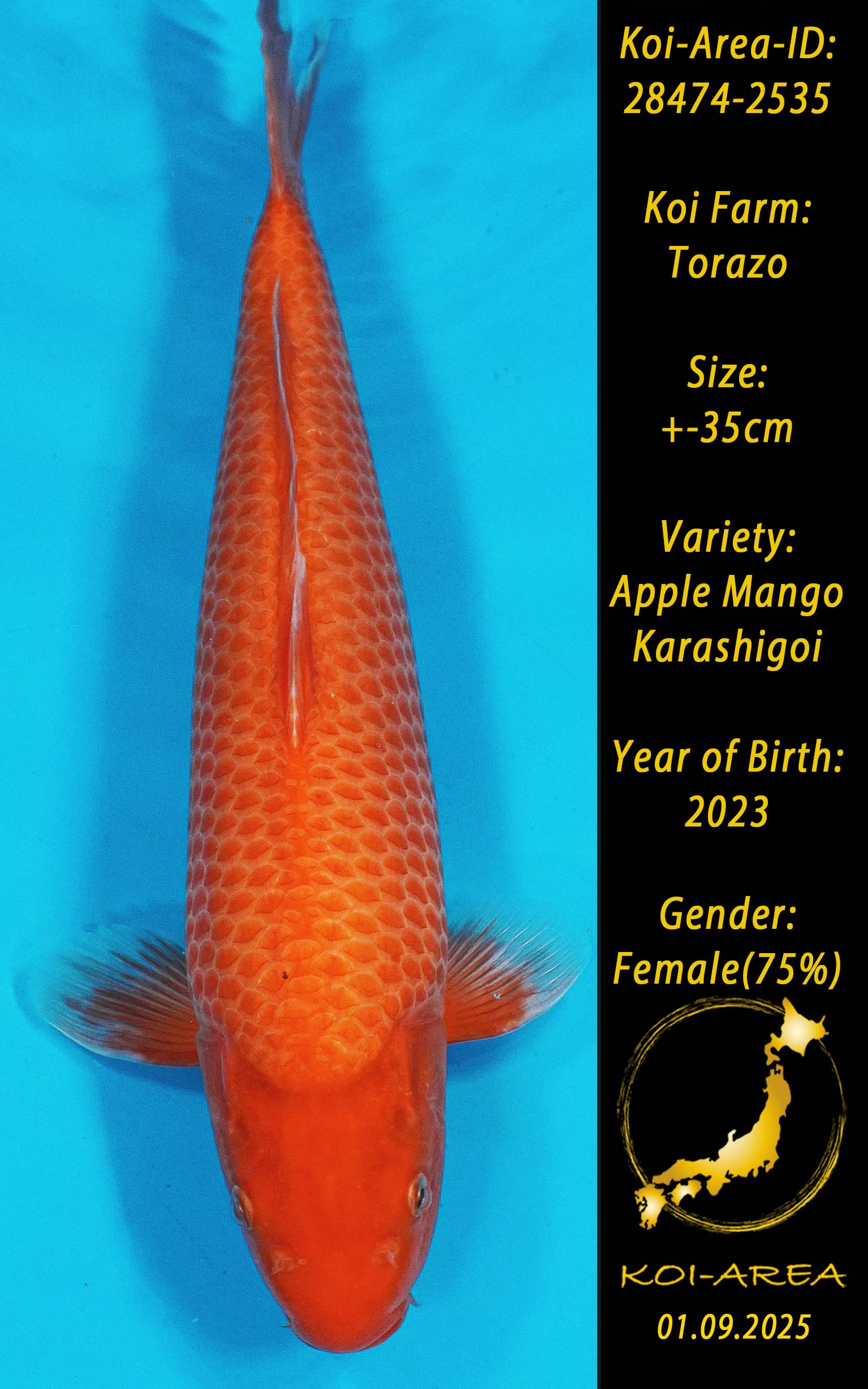 ⚠️ alle SummerSale Koi wurden Ende August bei uns im Hause fotografiert. Bitte beachten Sie, dass das Saisonende kurz bevor steht und Sie sich online einen der verfügbaren Abhol- oder Versandtermine buchen müssen. Alle Koi der Saison 24/25müssen bis zum Saisonende 30.09.2025 abgeholt worden sein. Sollten Sie online keinen passenden Termin finden müssen Sie sich innerhalb von 3 Tagen nach Rechnungsstellung mit einer Terminanfrage per E-Mail an info@koi-area.de bei uns melden. Vielen Dank