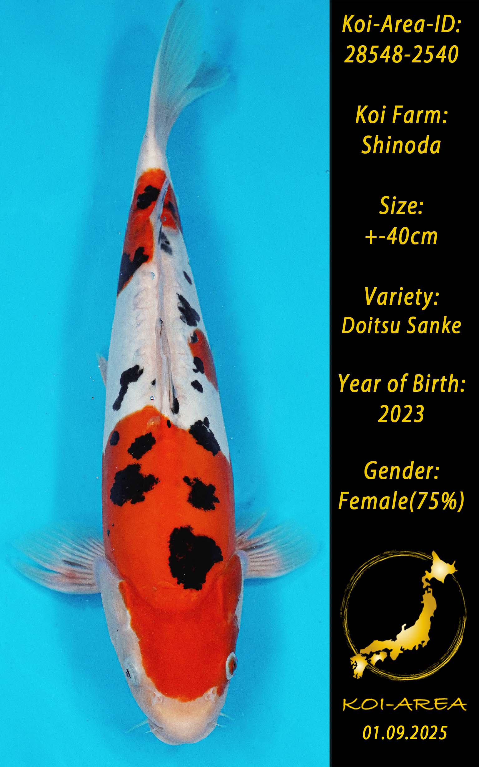 ⚠️ alle SummerSale Koi wurden Ende August bei uns im Hause fotografiert. Bitte beachten Sie, dass das Saisonende kurz bevor steht und Sie sich online einen der verfügbaren Abhol- oder Versandtermine buchen müssen. Alle Koi der Saison 24/25müssen bis zum Saisonende 30.09.2025 abgeholt worden sein. Sollten Sie online keinen passenden Termin finden müssen Sie sich innerhalb von 3 Tagen nach Rechnungsstellung mit einer Terminanfrage per E-Mail an info@koi-area.de bei uns melden. Vielen Dank