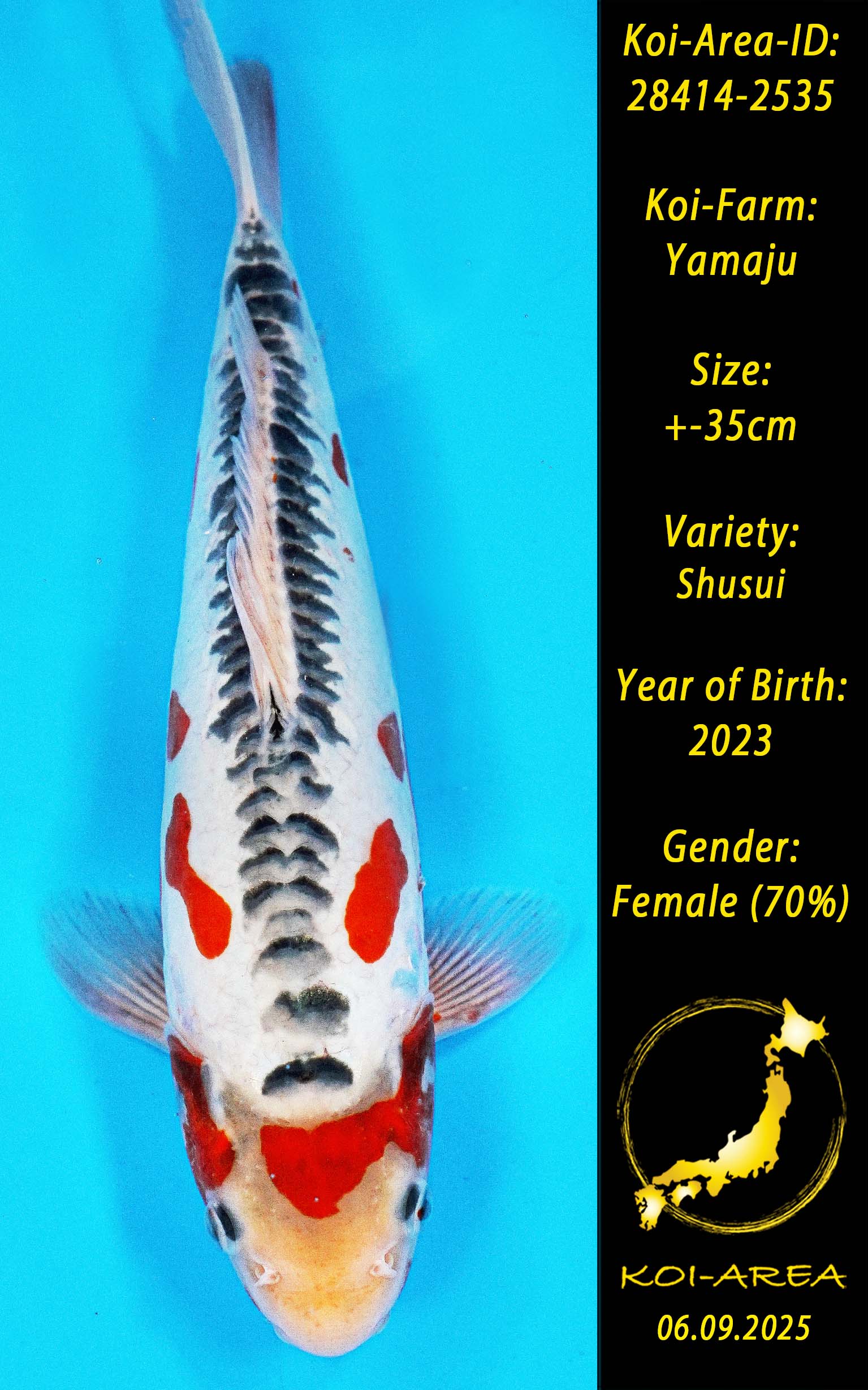 ⚠️ alle SummerSale Koi wurden Ende August bei uns im Hause fotografiert. Bitte beachten Sie, dass das Saisonende kurz bevor steht und Sie sich online einen der verfügbaren Abhol- oder Versandtermine buchen müssen. Alle Koi der Saison 24/25müssen bis zum Saisonende 30.09.2025 abgeholt worden sein. Sollten Sie online keinen passenden Termin finden müssen Sie sich innerhalb von 3 Tagen nach Rechnungsstellung mit einer Terminanfrage per E-Mail an info@koi-area.de bei uns melden. Vielen Dank