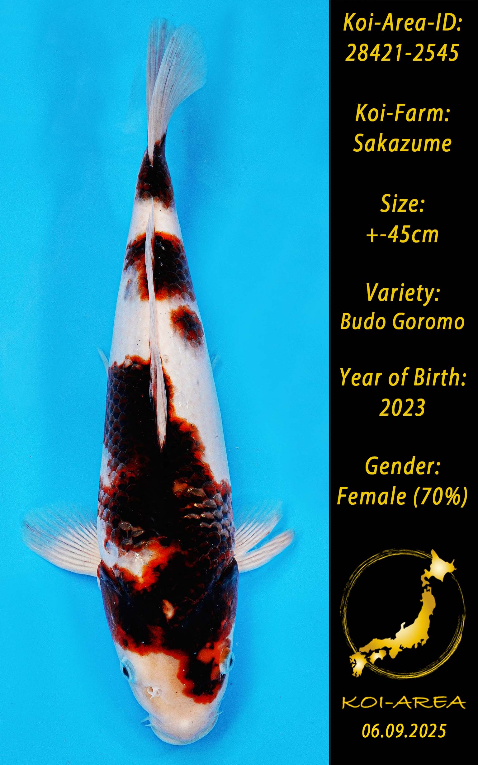 ⚠️ alle SummerSale Koi wurden Ende August bei uns im Hause fotografiert. Bitte beachten Sie, dass das Saisonende kurz bevor steht und Sie sich online einen der verfügbaren Abhol- oder Versandtermine buchen müssen. Alle Koi der Saison 24/25müssen bis zum Saisonende 30.09.2025 abgeholt worden sein. Sollten Sie online keinen passenden Termin finden müssen Sie sich innerhalb von 3 Tagen nach Rechnungsstellung mit einer Terminanfrage per E-Mail an info@koi-area.de bei uns melden. Vielen Dank