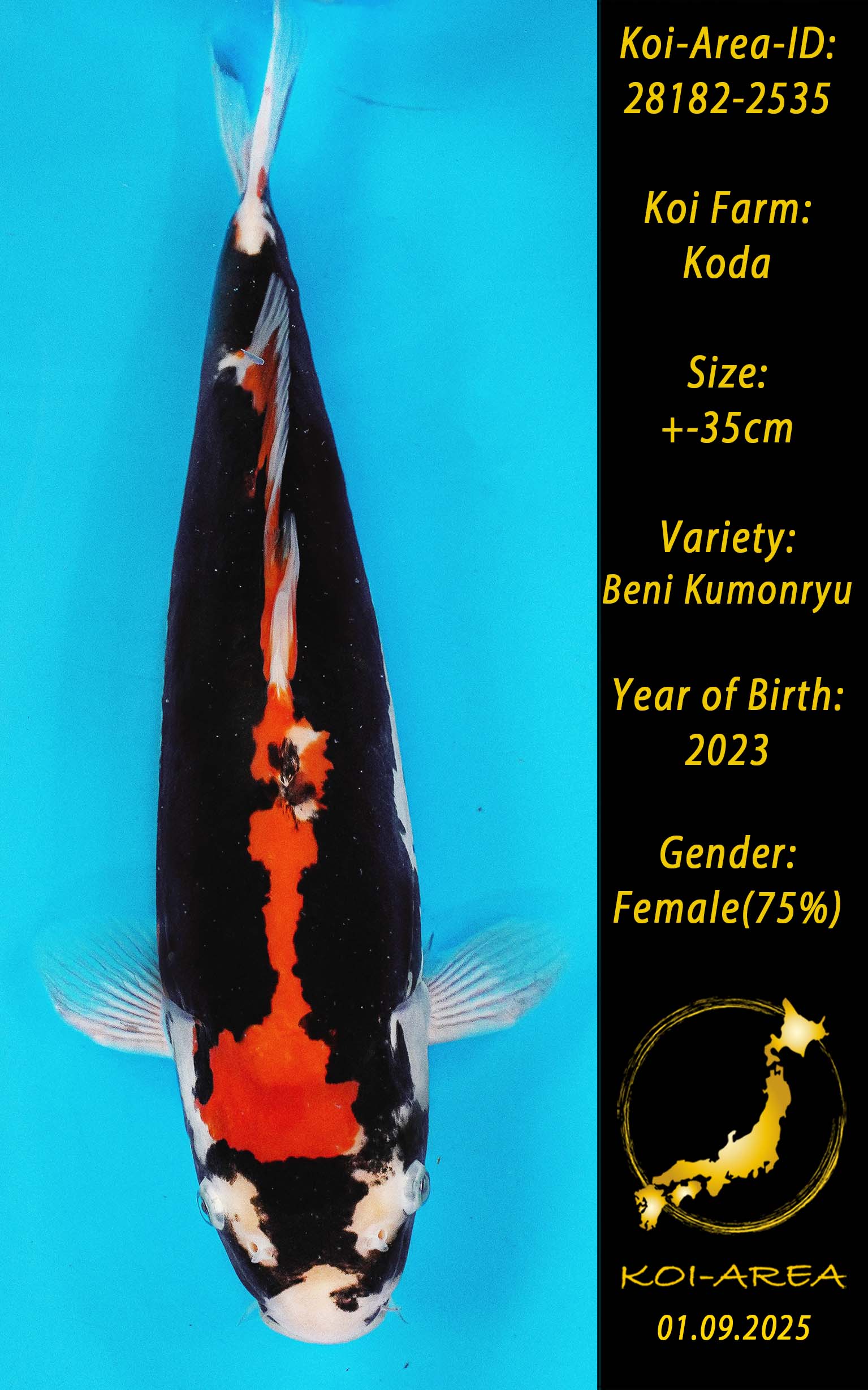 ⚠️ alle SummerSale Koi wurden Ende August bei uns im Hause fotografiert. Bitte beachten Sie, dass das Saisonende kurz bevor steht und Sie sich online einen der verfügbaren Abhol- oder Versandtermine buchen müssen. Alle Koi der Saison 24/25müssen bis zum Saisonende 30.09.2025 abgeholt worden sein. Sollten Sie online keinen passenden Termin finden müssen Sie sich innerhalb von 3 Tagen nach Rechnungsstellung mit einer Terminanfrage per E-Mail an info@koi-area.de bei uns melden. Vielen Dank