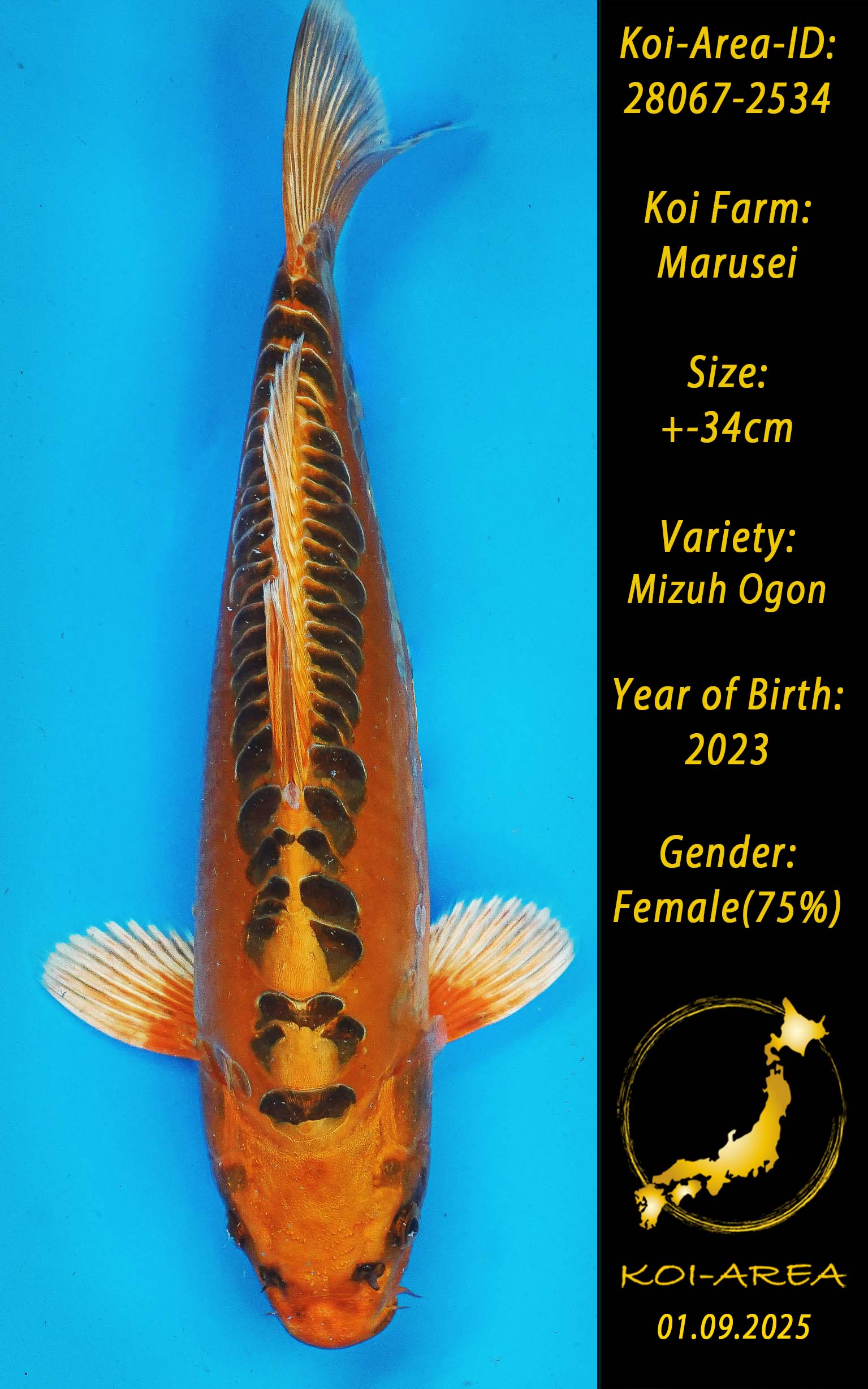 ⚠️ alle SummerSale Koi wurden Ende August bei uns im Hause fotografiert. Bitte beachten Sie, dass das Saisonende kurz bevor steht und Sie sich online einen der verfügbaren Abhol- oder Versandtermine buchen müssen. Alle Koi der Saison 24/25müssen bis zum Saisonende 30.09.2025 abgeholt worden sein. Sollten Sie online keinen passenden Termin finden müssen Sie sich innerhalb von 3 Tagen nach Rechnungsstellung mit einer Terminanfrage per E-Mail an info@koi-area.de bei uns melden. Vielen Dank