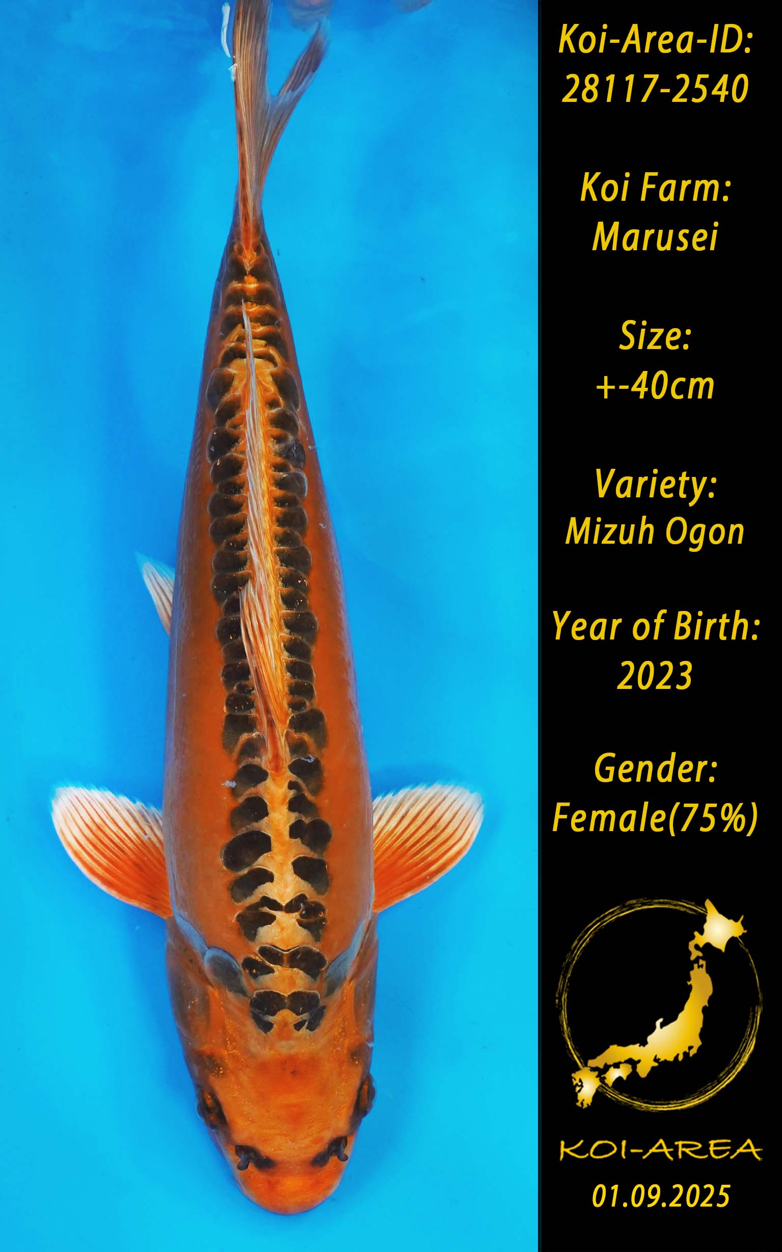 ⚠️ alle SummerSale Koi wurden Ende August bei uns im Hause fotografiert. Bitte beachten Sie, dass das Saisonende kurz bevor steht und Sie sich online einen der verfügbaren Abhol- oder Versandtermine buchen müssen. Alle Koi der Saison 24/25müssen bis zum Saisonende 30.09.2025 abgeholt worden sein. Sollten Sie online keinen passenden Termin finden müssen Sie sich innerhalb von 3 Tagen nach Rechnungsstellung mit einer Terminanfrage per E-Mail an info@koi-area.de bei uns melden. Vielen Dank