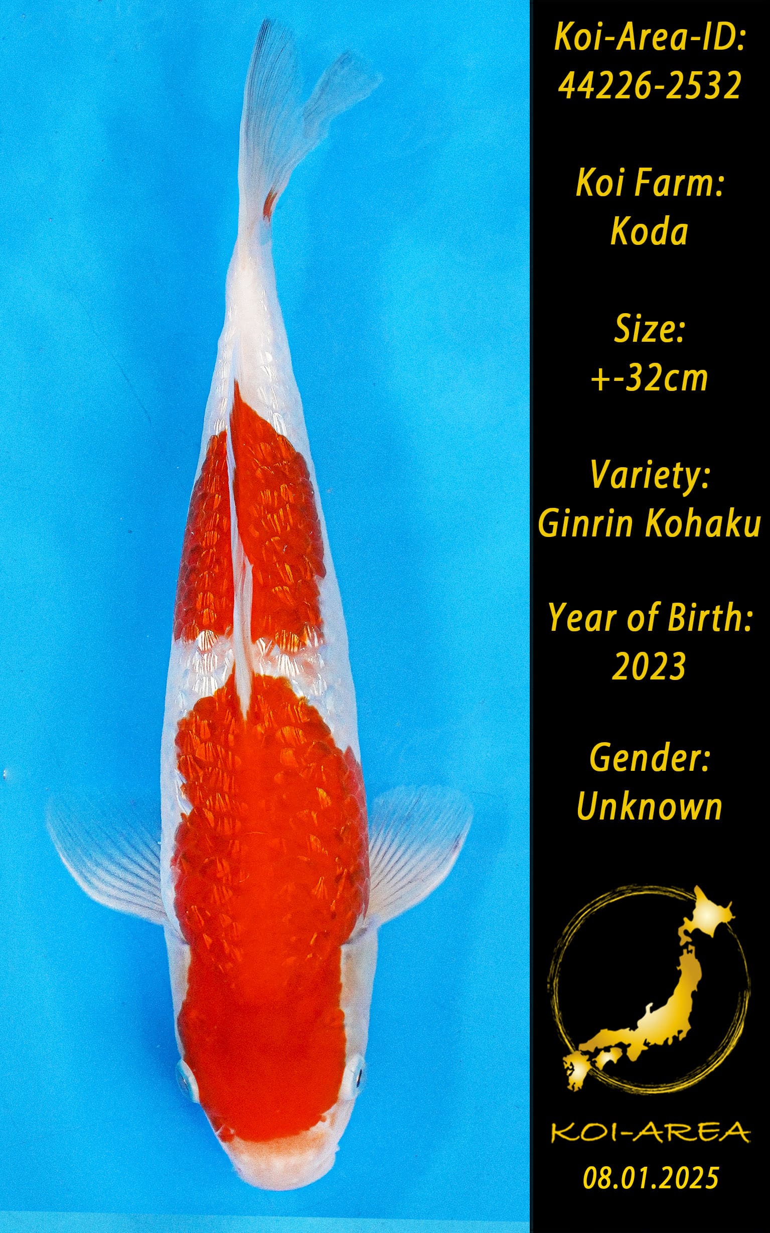 ⚠️ alle SummerSale Koi wurden Ende August bei uns im Hause fotografiert. Bitte beachten Sie, dass das Saisonende kurz bevor steht und Sie sich online einen der verfügbaren Abhol- oder Versandtermine buchen müssen. Alle Koi der Saison 24/25müssen bis zum Saisonende 30.09.2025 abgeholt worden sein. Sollten Sie online keinen passenden Termin finden müssen Sie sich innerhalb von 3 Tagen nach Rechnungsstellung mit einer Terminanfrage per E-Mail an info@koi-area.de bei uns melden. Vielen Dank
