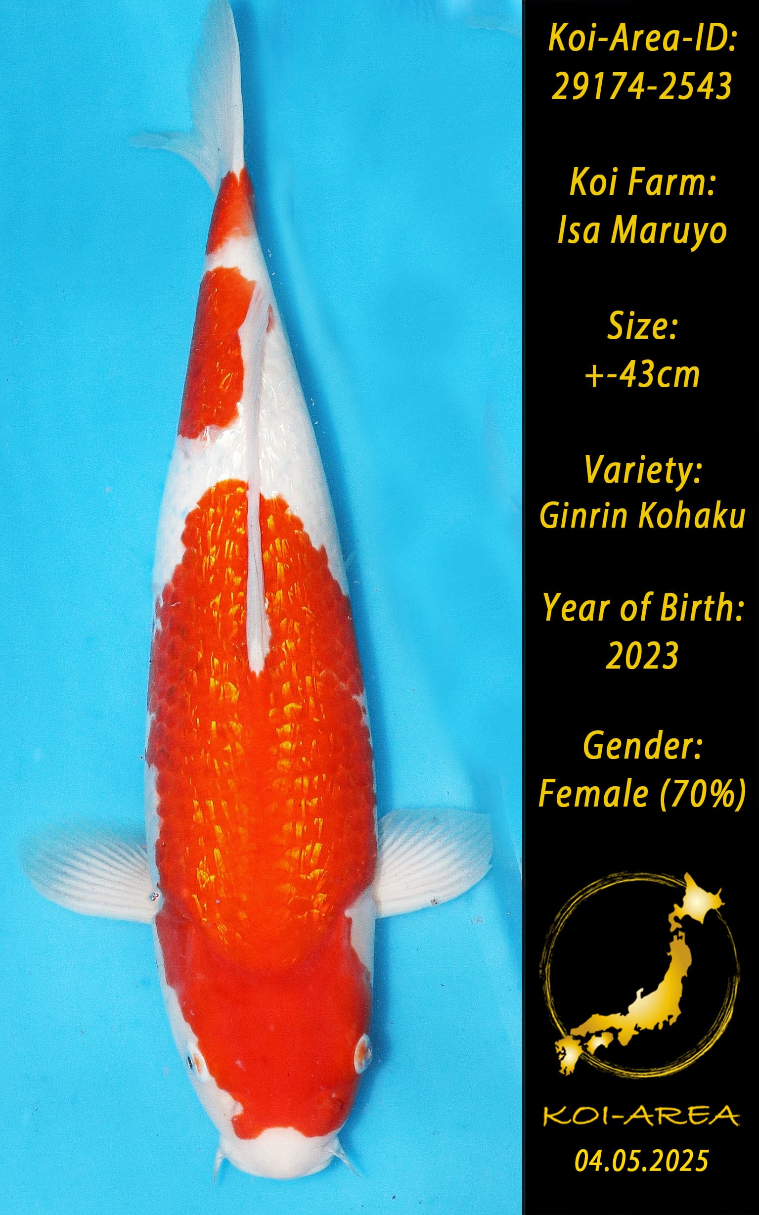 alle Koi welche ab dem 03.05.25 bei uns ersteigert oder im Onlineshop gekauft wurden müssen bis einschließlich 31.08.2025 abgeholt werden. Koi mit der ID 29xxx-25xx (2. Shipment) können ab dem 10.07.25 abgeholt werden.