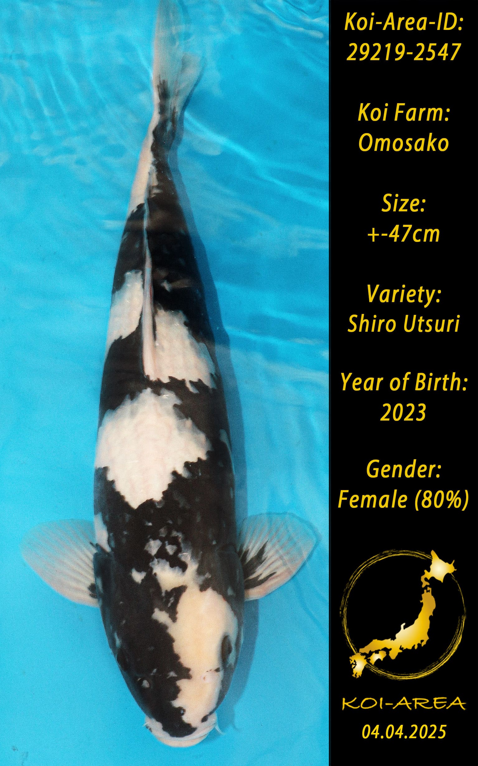 alle Koi welche ab dem 03.05.25 bei uns ersteigert oder im Onlineshop gekauft wurden müssen bis einschließlich 31.08.2025 abgeholt werden. Koi mit der ID 29xxx-25xx (2. Shipment) können ab dem 10.07.25 abgeholt werden.