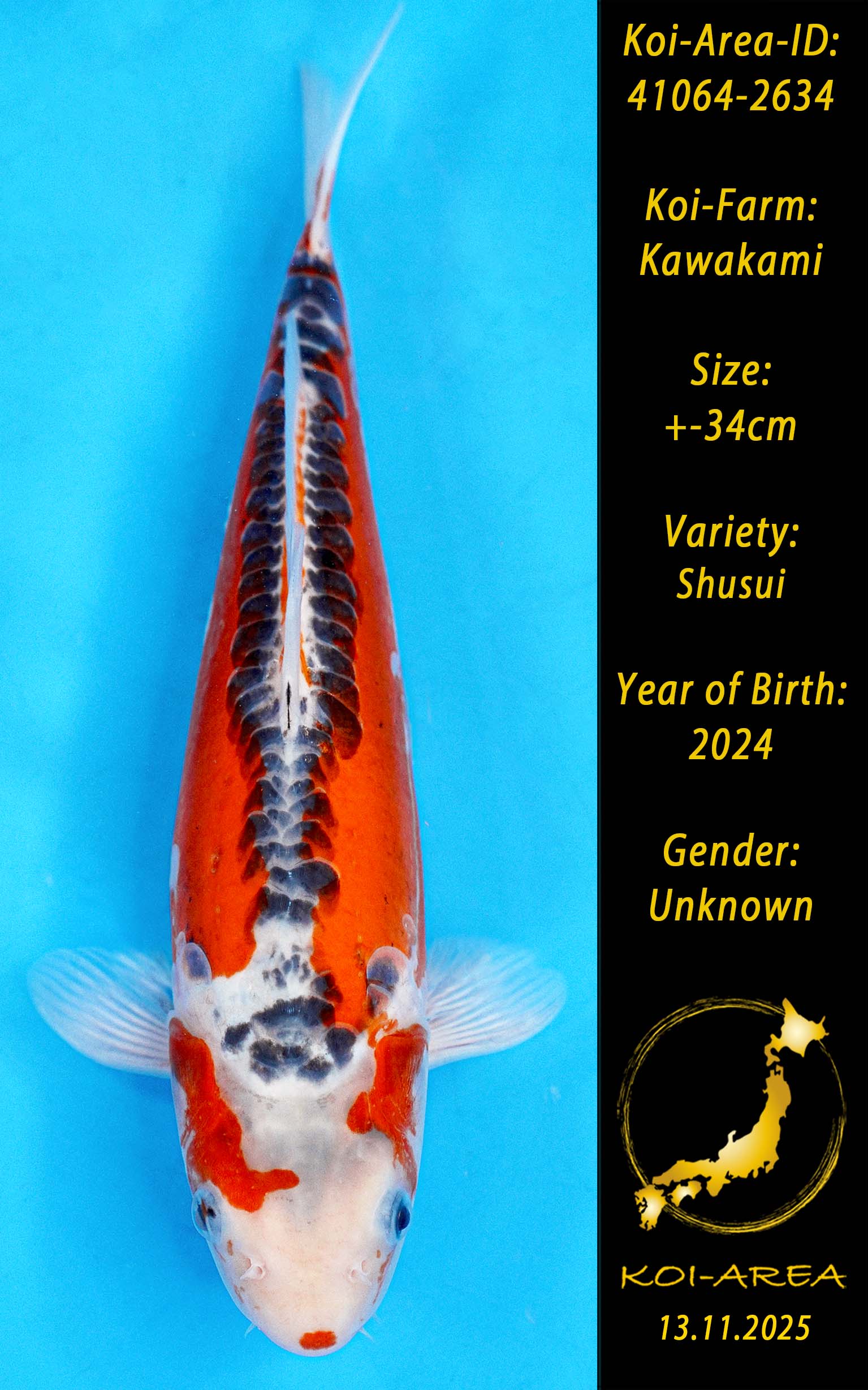 ⚠️ alle SummerSale Koi wurden Ende August bei uns im Hause fotografiert. Bitte beachten Sie, dass das Saisonende kurz bevor steht und Sie sich online einen der verfügbaren Abhol- oder Versandtermine buchen müssen. Alle Koi der Saison 24/25müssen bis zum Saisonende 30.09.2025 abgeholt worden sein. Sollten Sie online keinen passenden Termin finden müssen Sie sich innerhalb von 3 Tagen nach Rechnungsstellung mit einer Terminanfrage per E-Mail an info@koi-area.de bei uns melden. Vielen Dank
