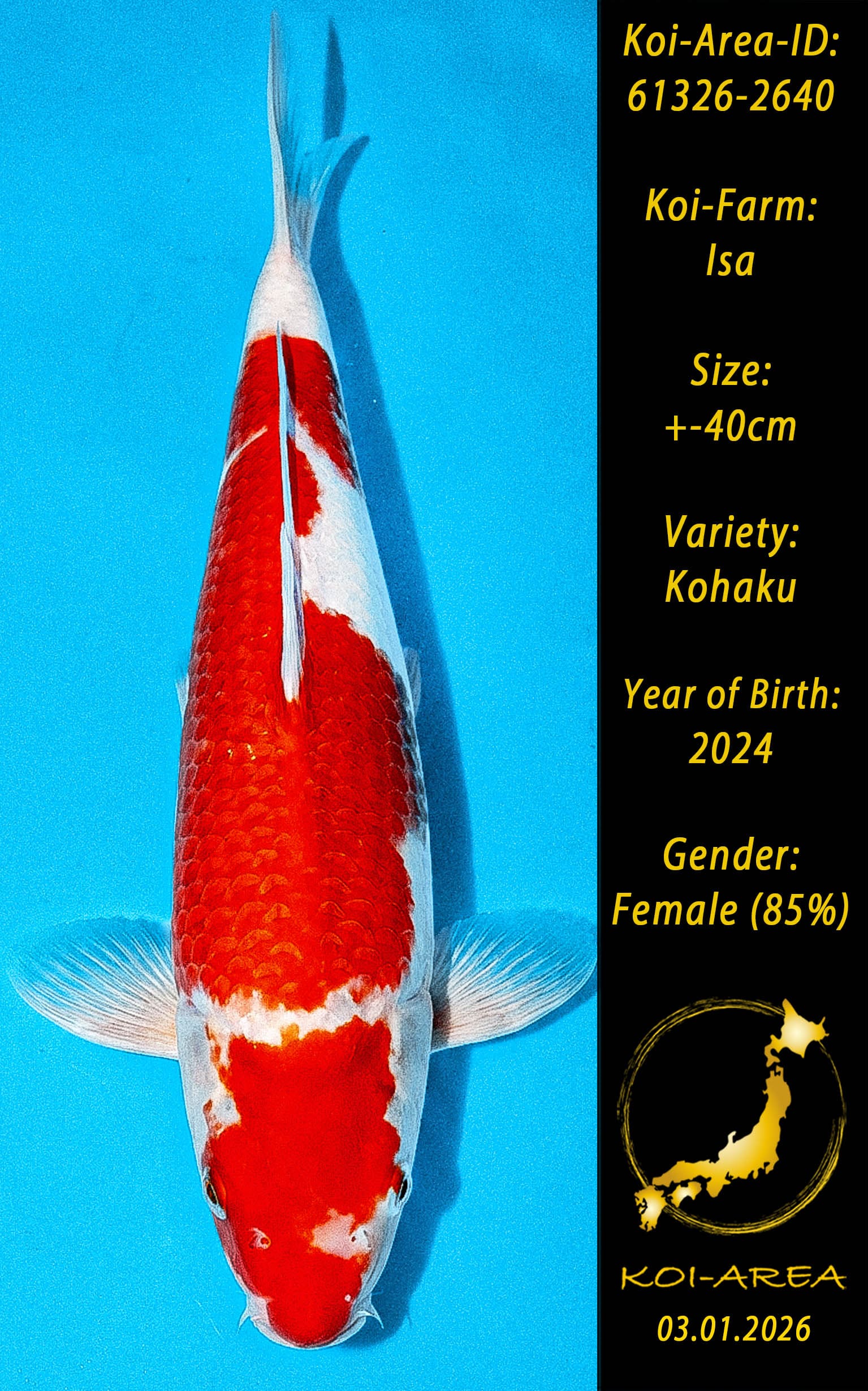 Nach erfolgreicher Auktion erscheint Ihr Koi in Ihrem Kundenkonto. Ein Zertifikat kann beim Züchter angefragt und gegen eine Gebühr dazu erworben werden.