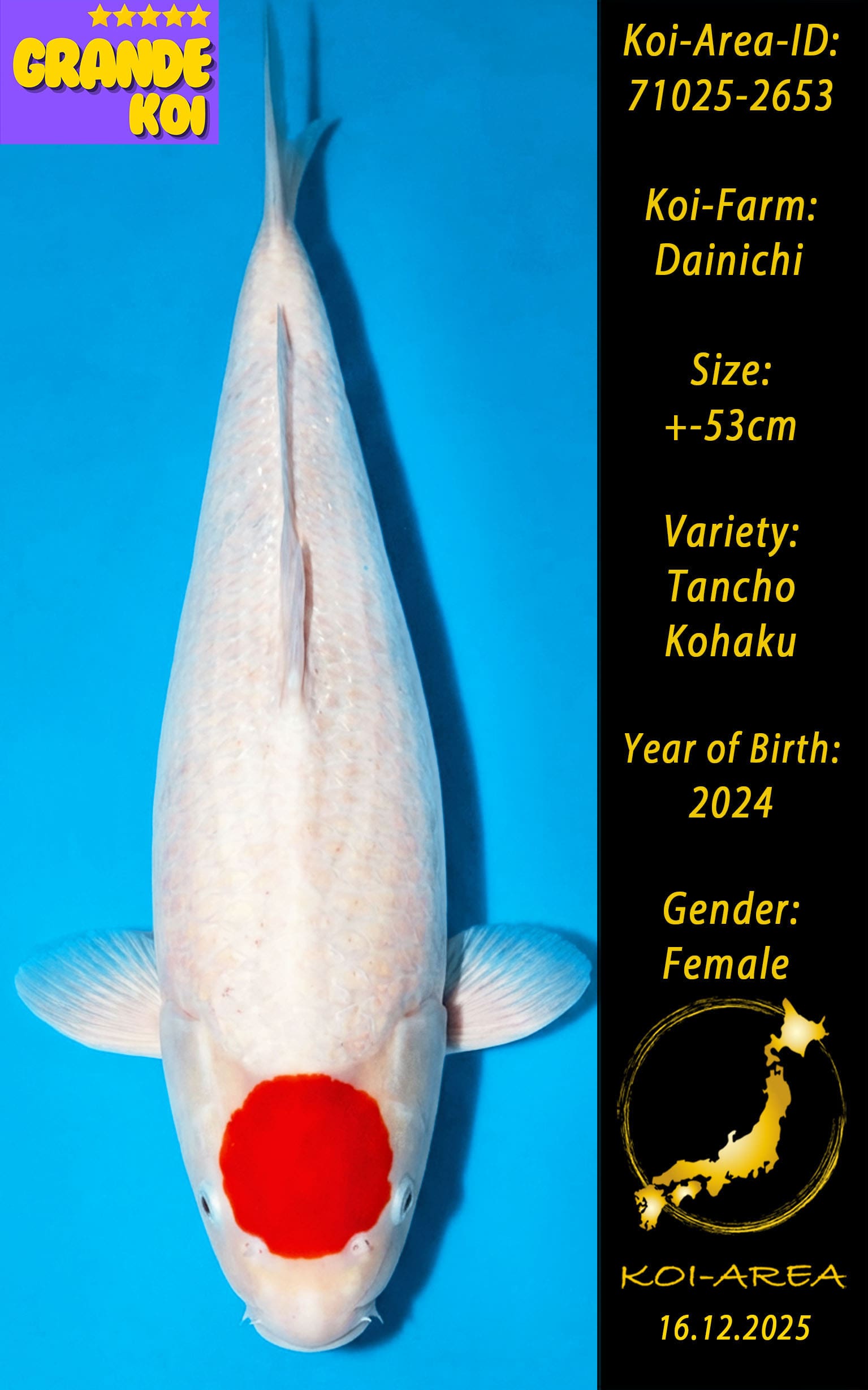 Nach erfolgreicher Auktion erscheint Ihr Koi in Ihrem Kundenkonto. Ein Zertifikat kann beim Züchter angefragt und gegen eine Gebühr dazu erworben werden.