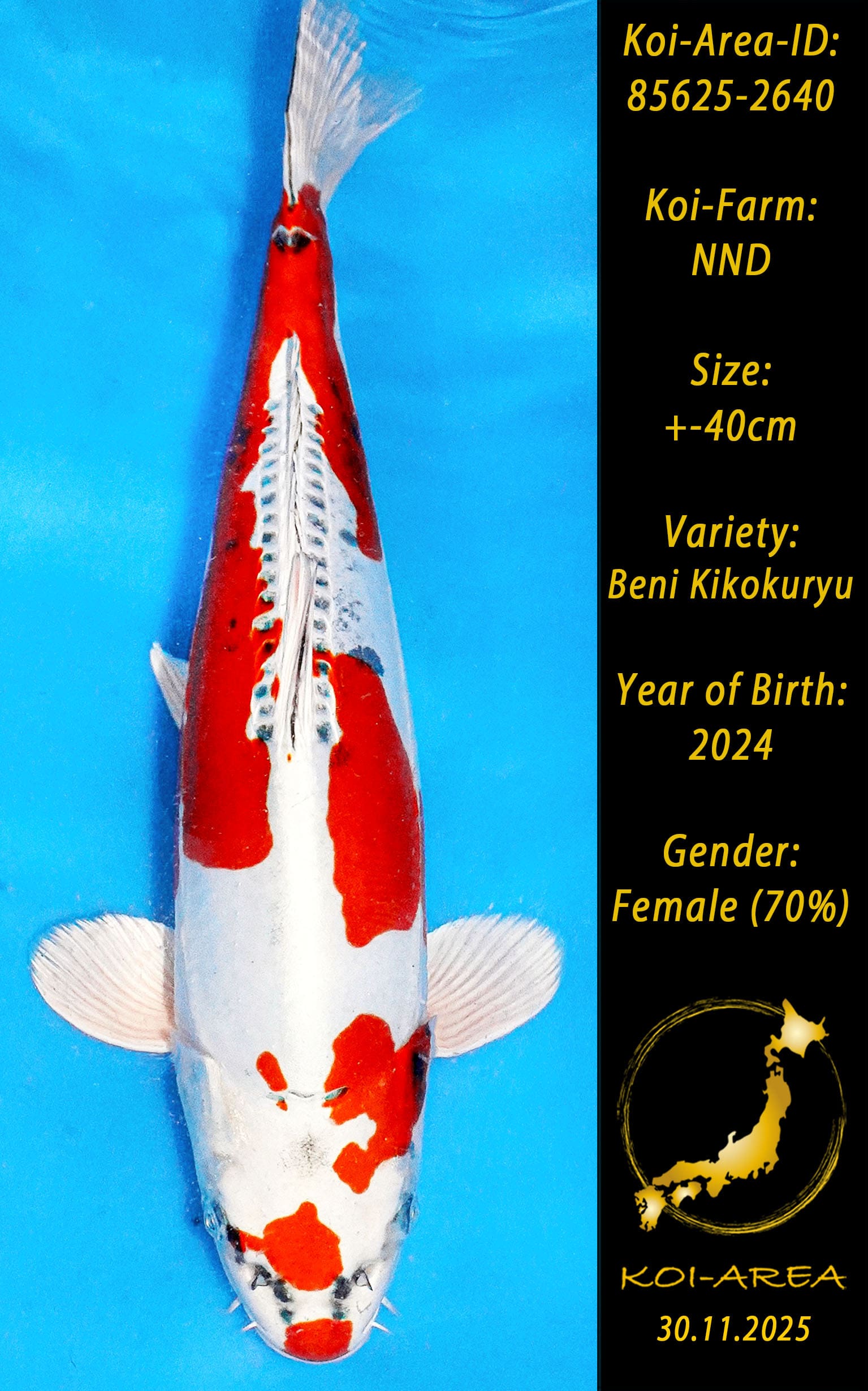 ⚠️ 🚛 🇯🇵 live aus Japan KOI – Dieser Koi schwimmt aktuell noch in Japan. Abhol-/ und Versandtermine für diesen Koi sind ab Anfang April 2026 verfügbar