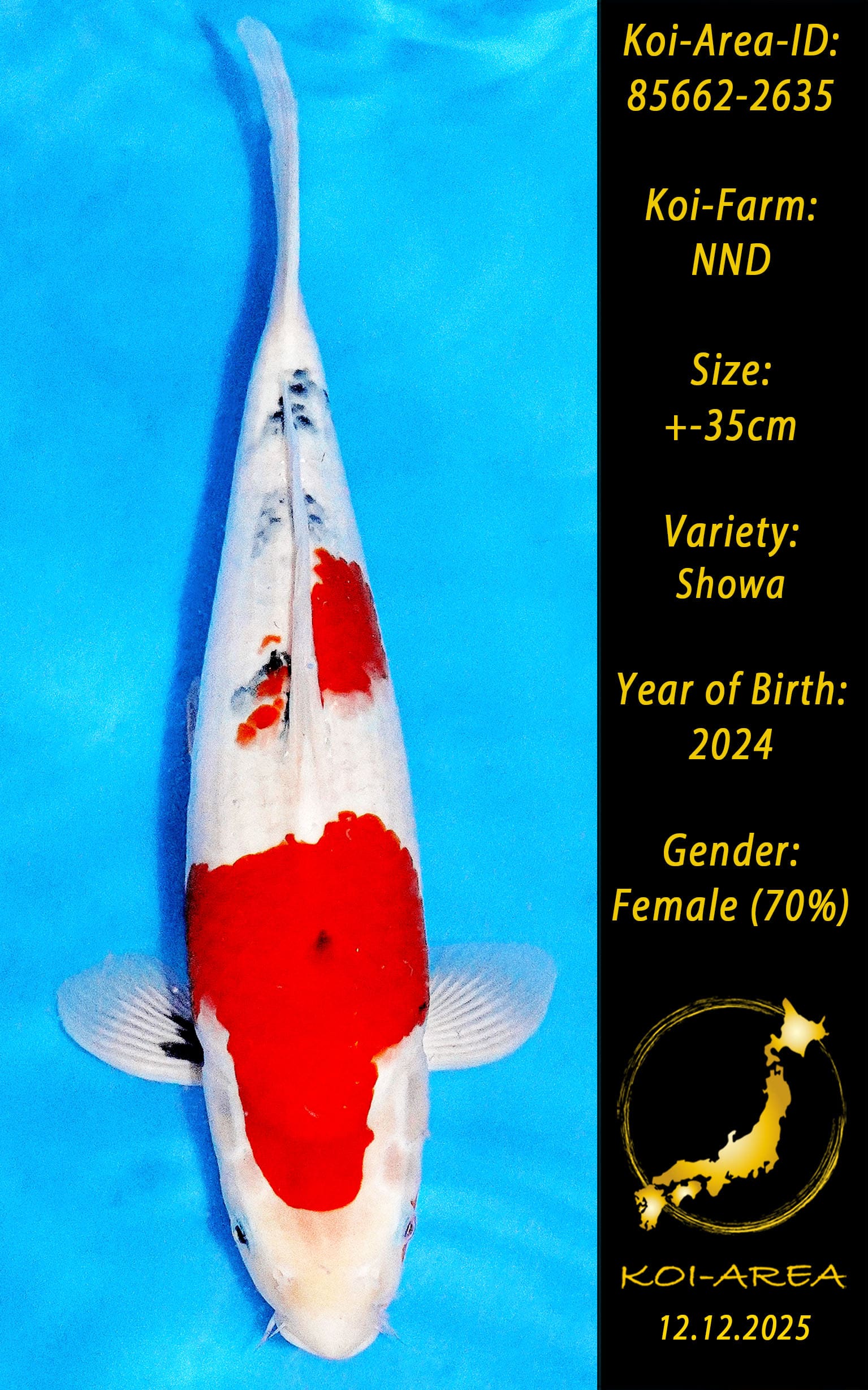 ⚠️ 🚛 🇯🇵 live aus Japan KOI – Dieser Koi schwimmt aktuell noch in Japan. Abhol-/ und Versandtermine für diesen Koi sind ab Anfang April 2026 verfügbar