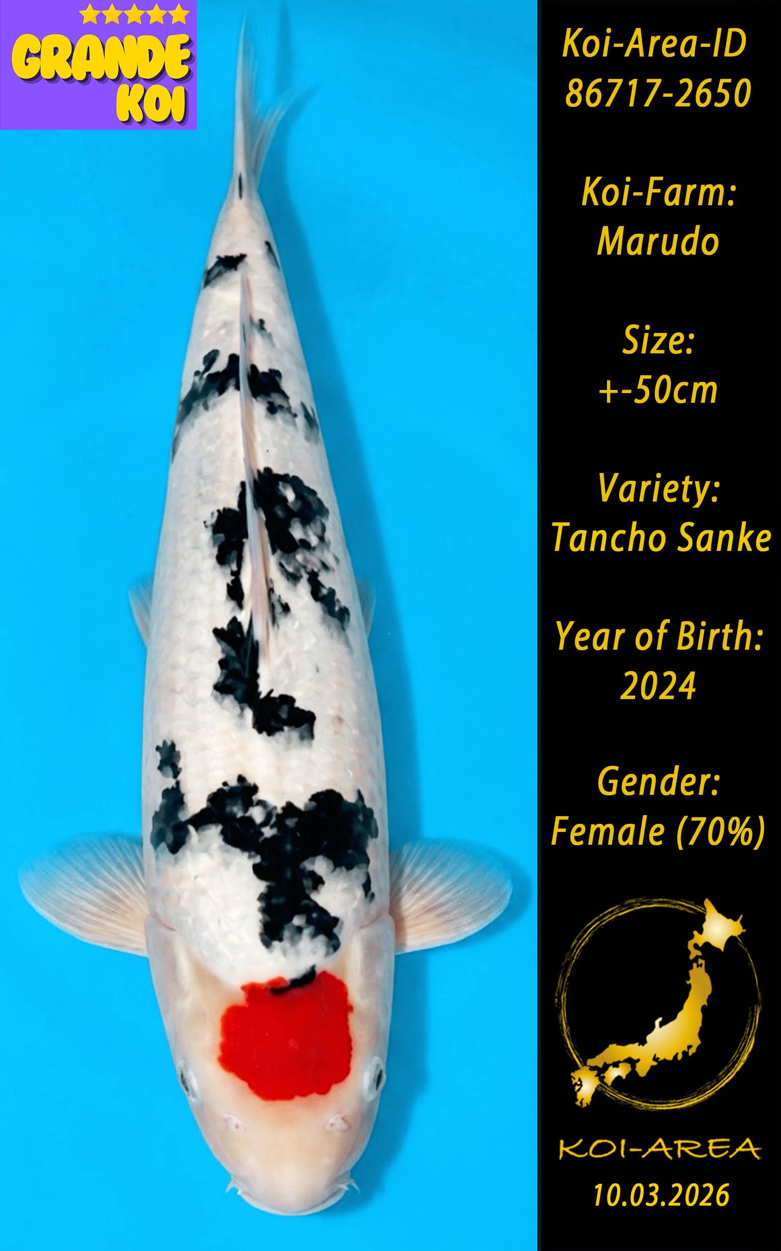 ⚠️ 🚛 🇯🇵 live aus Japan KOI – Dieser Koi schwimmt aktuell noch in Japan. Abhol-/ und Versandtermine für diesen Koi sind ab Anfang April 2026 verfügbar