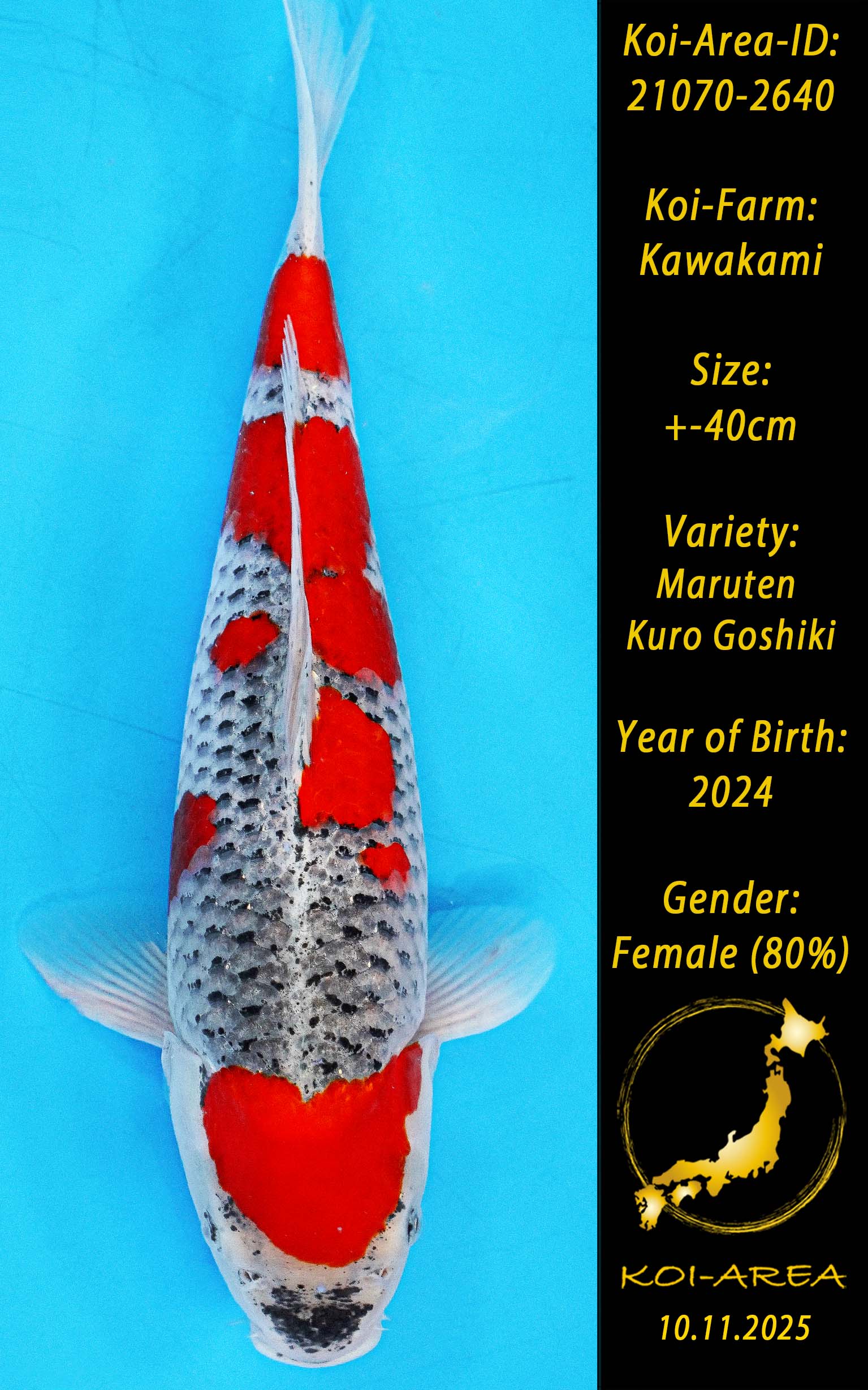Nach erfolgreicher Auktion erscheint Ihr Koi in Ihrem Kundenkonto. Ein Zertifikat kann beim Züchter angefragt und gegen eine Gebühr dazu erworben werden.