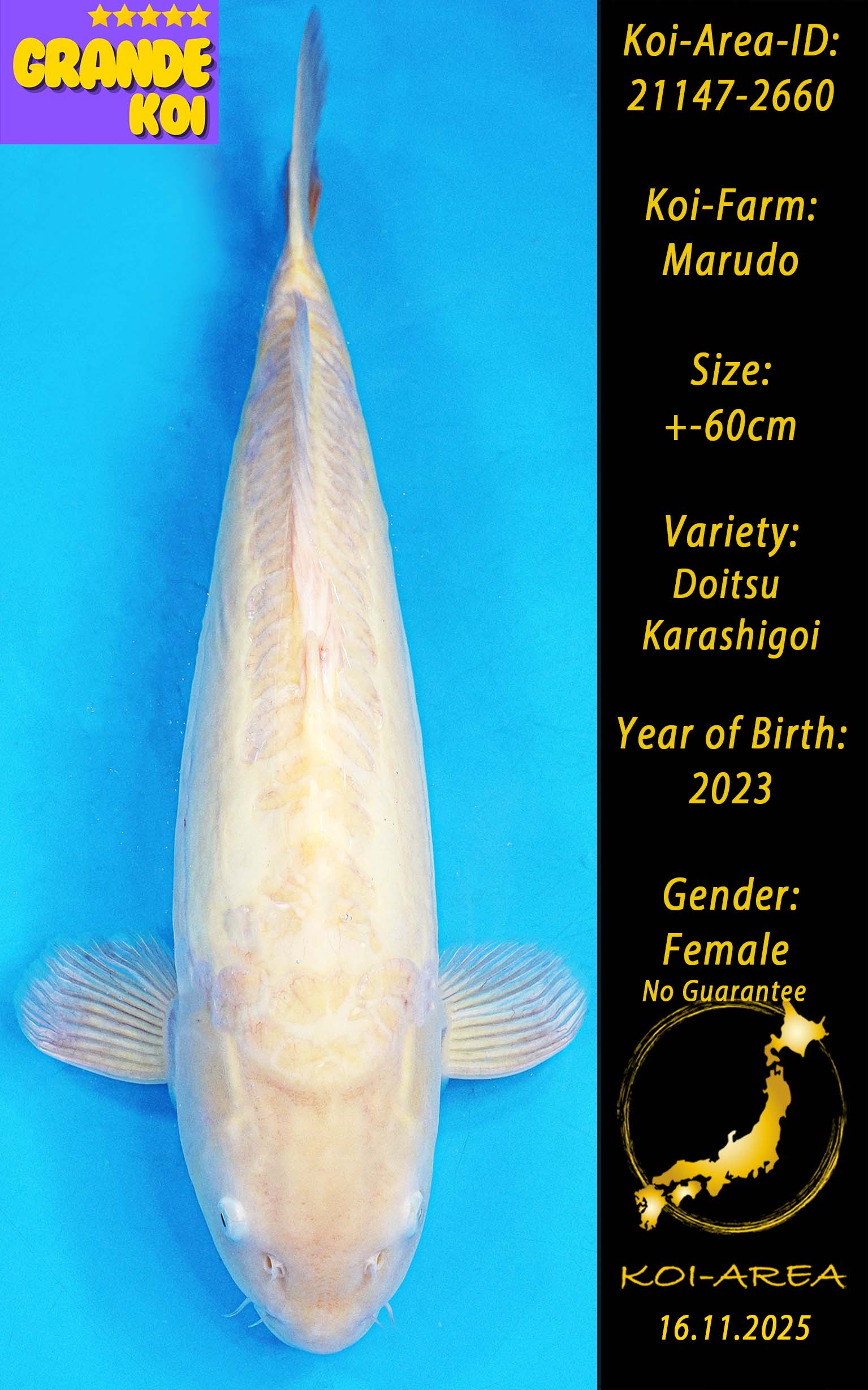 Nach erfolgreicher Auktion erscheint Ihr Koi in Ihrem Kundenkonto. Ein Zertifikat kann beim Züchter angefragt und gegen eine Gebühr dazu erworben werden.