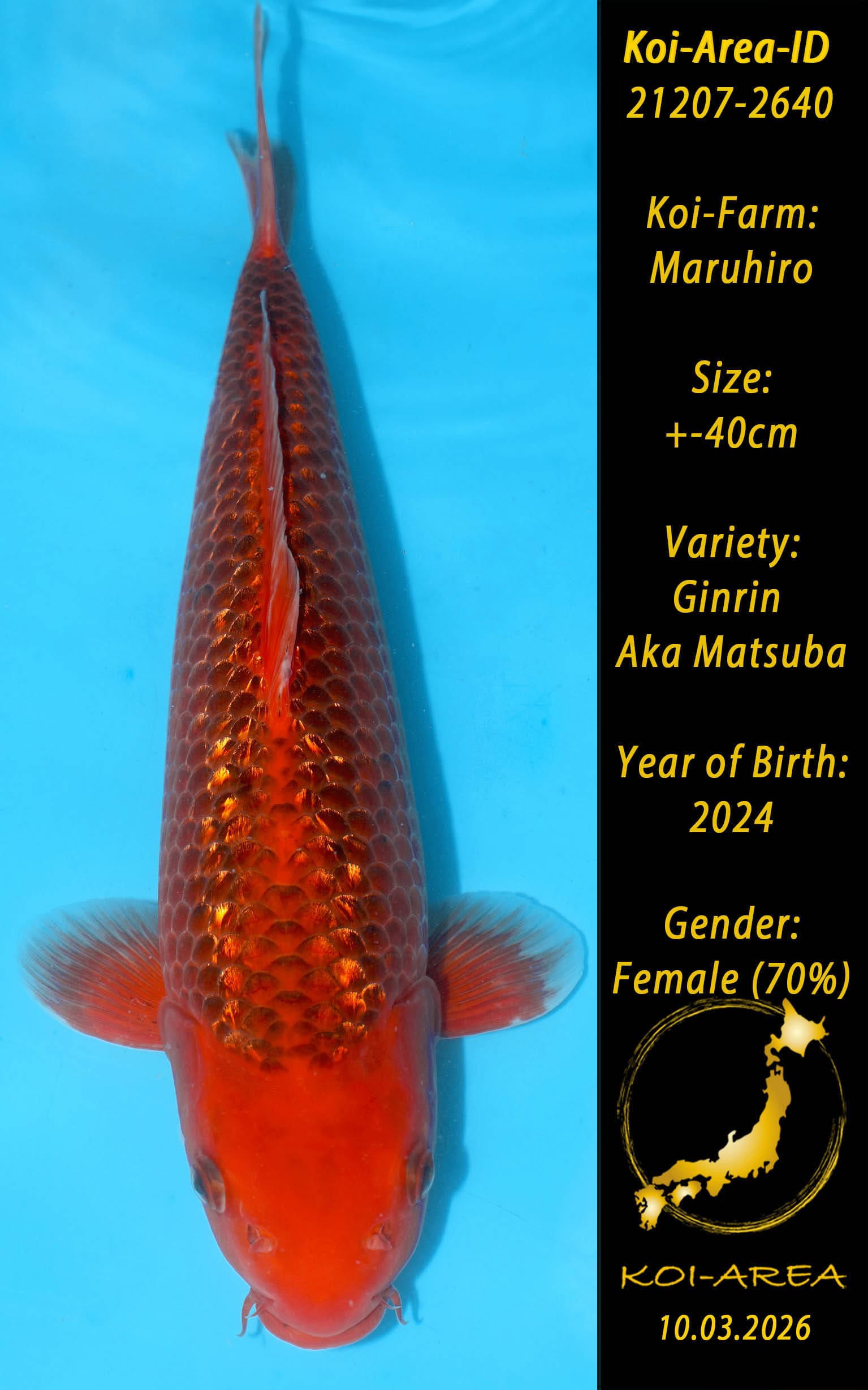 Nach erfolgreicher Auktion erscheint Ihr Koi in Ihrem Kundenkonto. Ein Zertifikat kann beim Züchter angefragt und gegen eine Gebühr dazu erworben werden.