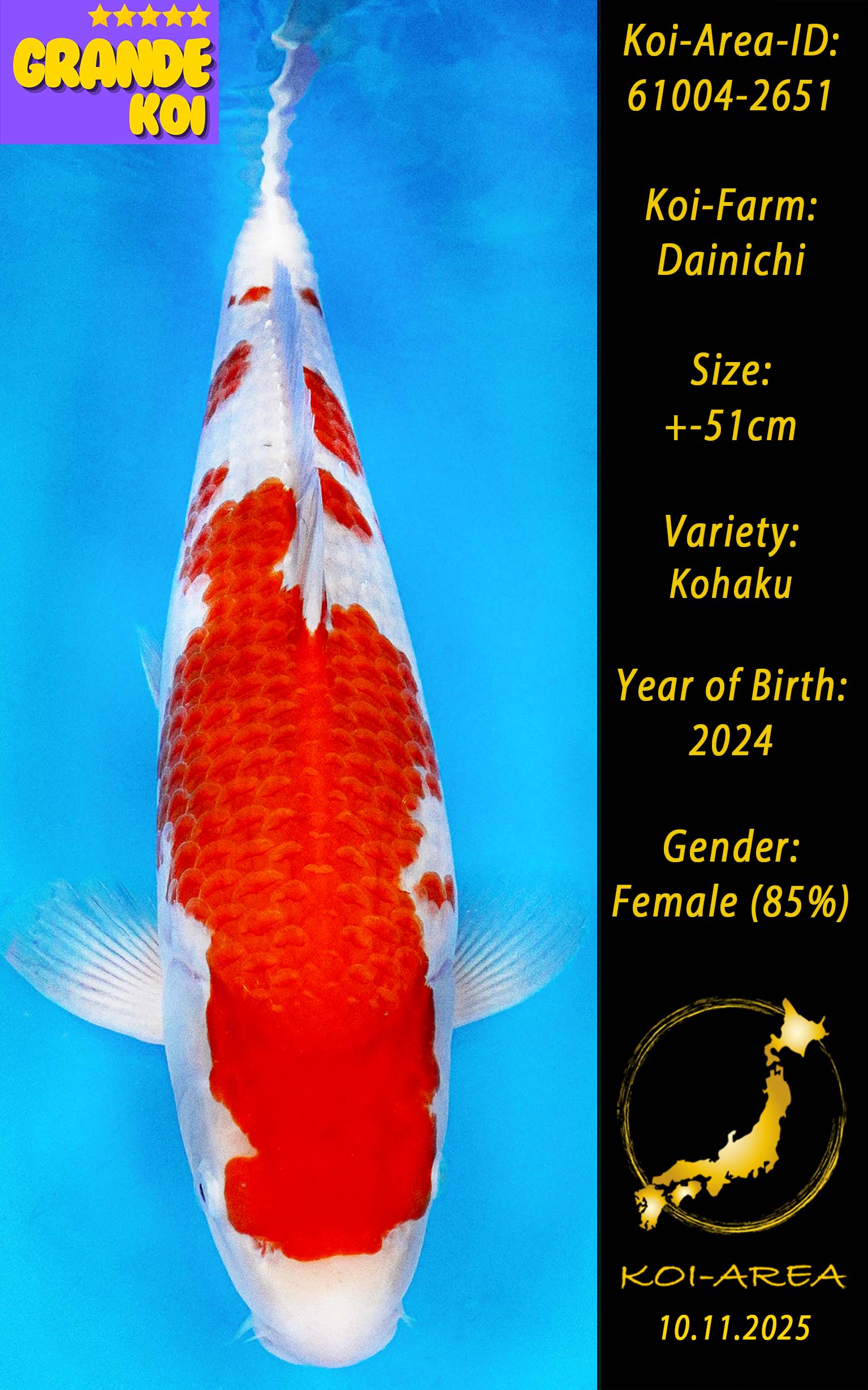 Nach erfolgreicher Auktion erscheint Ihr Koi in Ihrem Kundenkonto. Ein Zertifikat kann beim Züchter angefragt und gegen eine Gebühr dazu erworben werden.