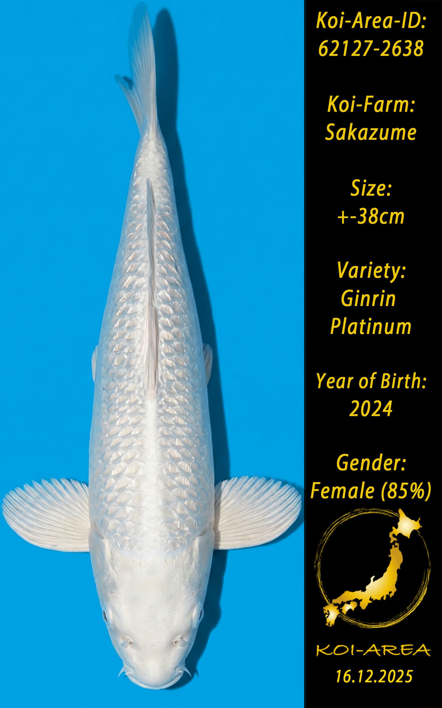 Nach erfolgreicher Auktion erscheint Ihr Koi in Ihrem Kundenkonto. Ein Zertifikat kann beim Züchter angefragt und gegen eine Gebühr dazu erworben werden.