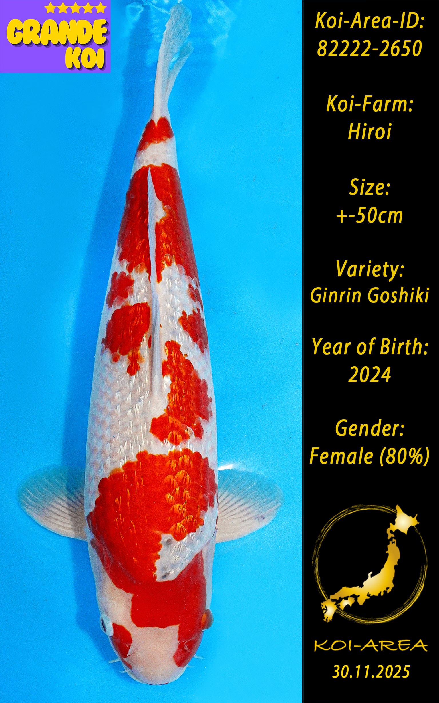 ⚠️ 🚛 🇯🇵 live aus Japan KOI – Dieser Koi schwimmt aktuell noch in Japan. Abhol-/ und Versandtermine für diesen Koi sind ab Anfang April 2026 verfügbar