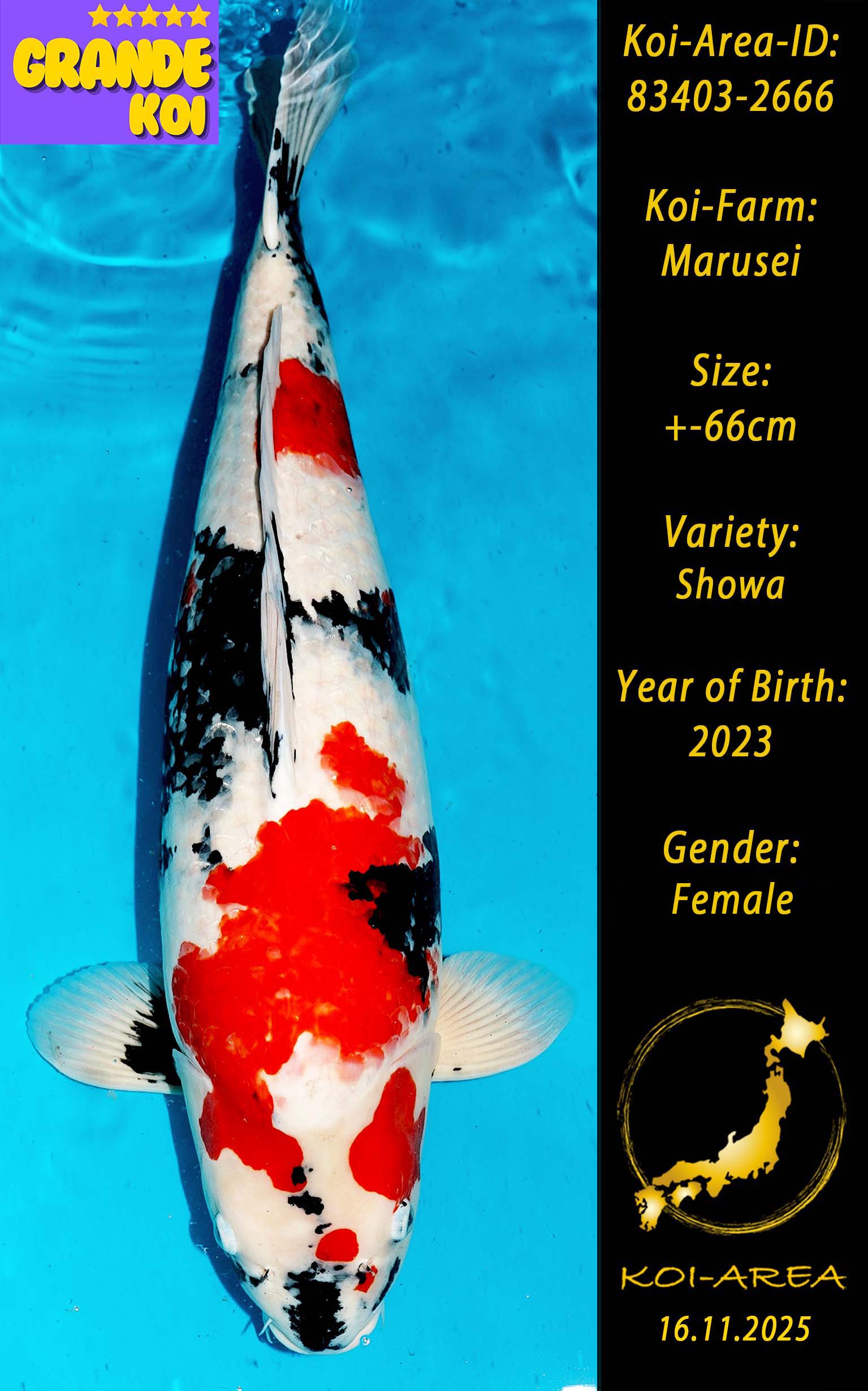 ⚠️ 🚛 🇯🇵 live aus Japan KOI – Dieser Koi schwimmt aktuell noch in Japan. Abhol-/ und Versandtermine für diesen Koi sind ab Anfang April 2026 verfügbar