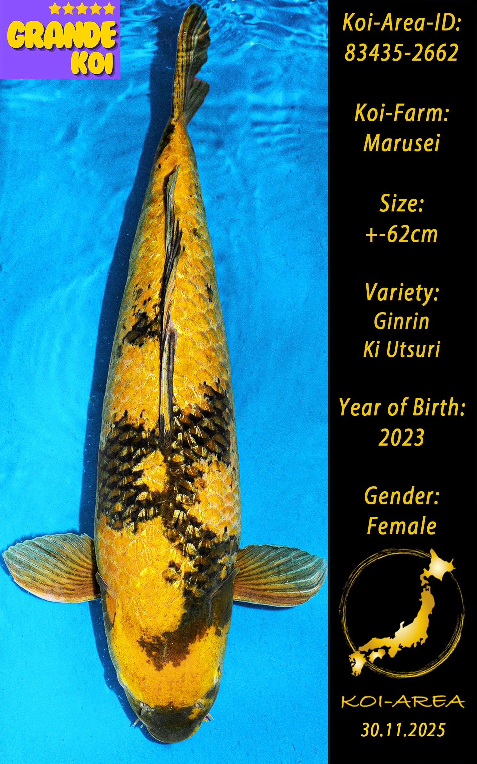 ⚠️ 🚛 🇯🇵 live aus Japan KOI – Dieser Koi schwimmt aktuell noch in Japan. Abhol-/ und Versandtermine für diesen Koi sind ab Anfang April 2026 verfügbar